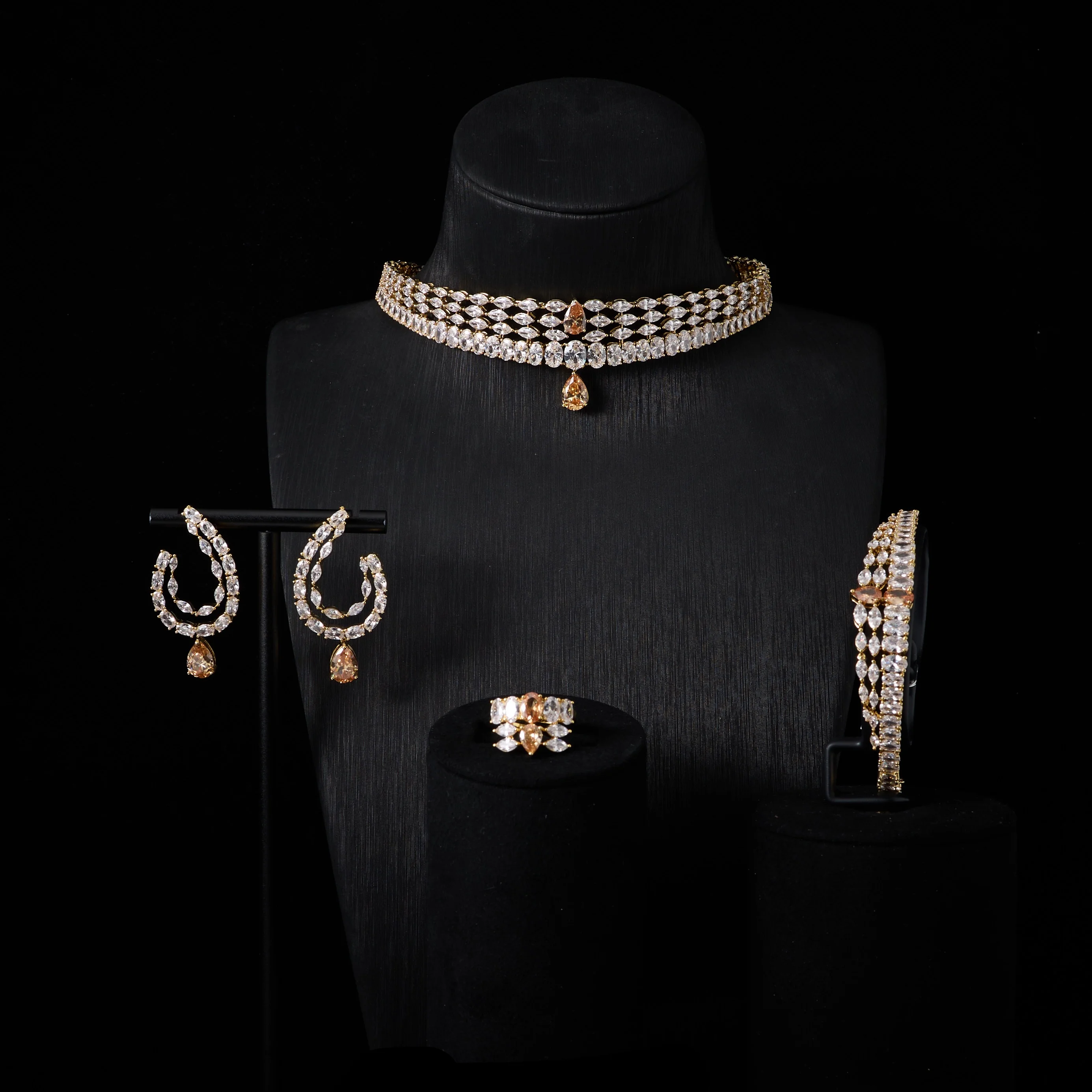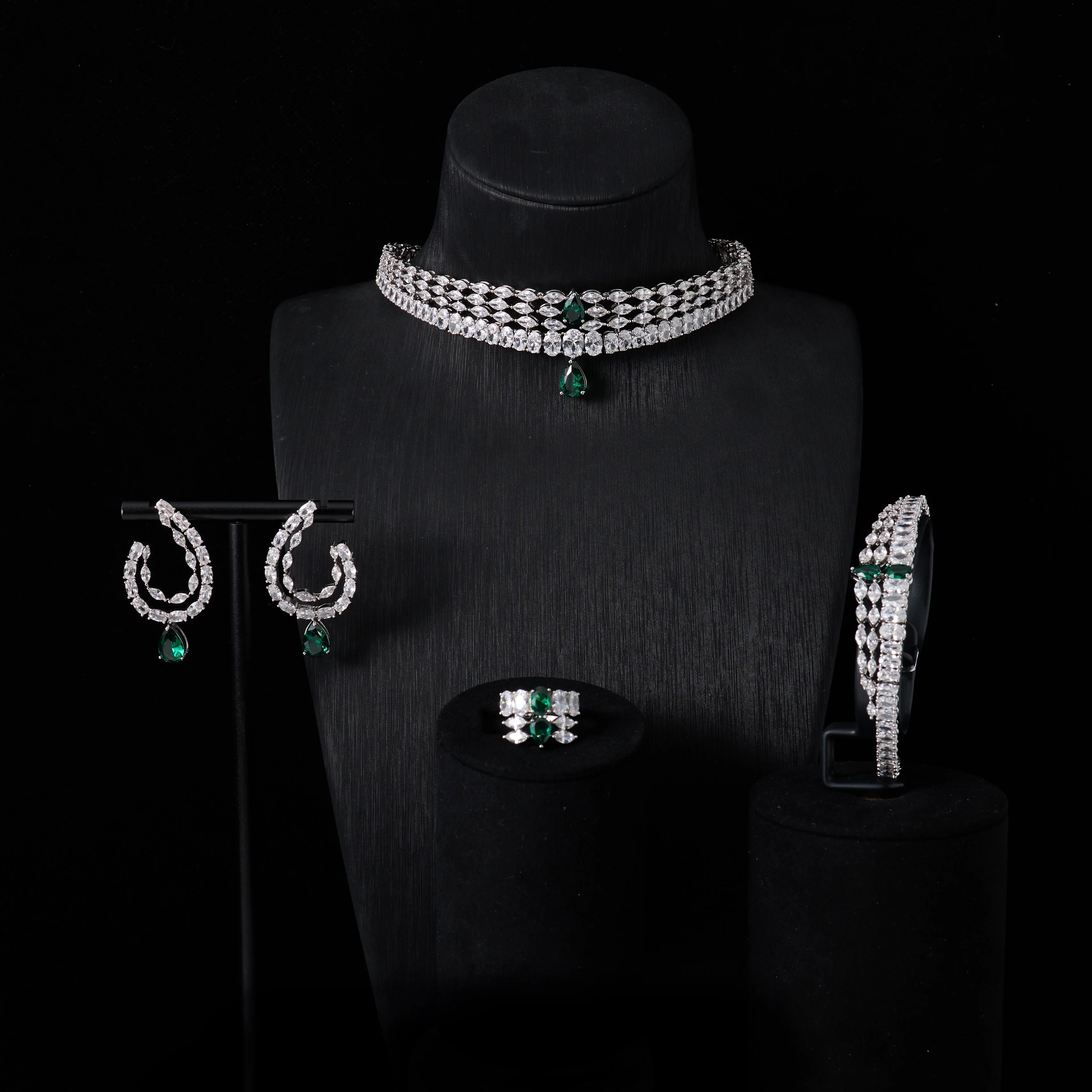 00044 Choker Necklace Sets for Women Cubic Zirconia Bridal Jewellery Set Dubai Saudi Party Engagement Accessory