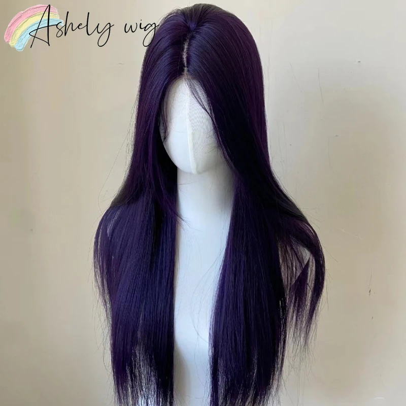 13x4 Dark Purple Wig Long Straight Purple Synthetic Lace Front Wigs for Woman daily use Heat Resistant Fiber Glueless Lace Wigs