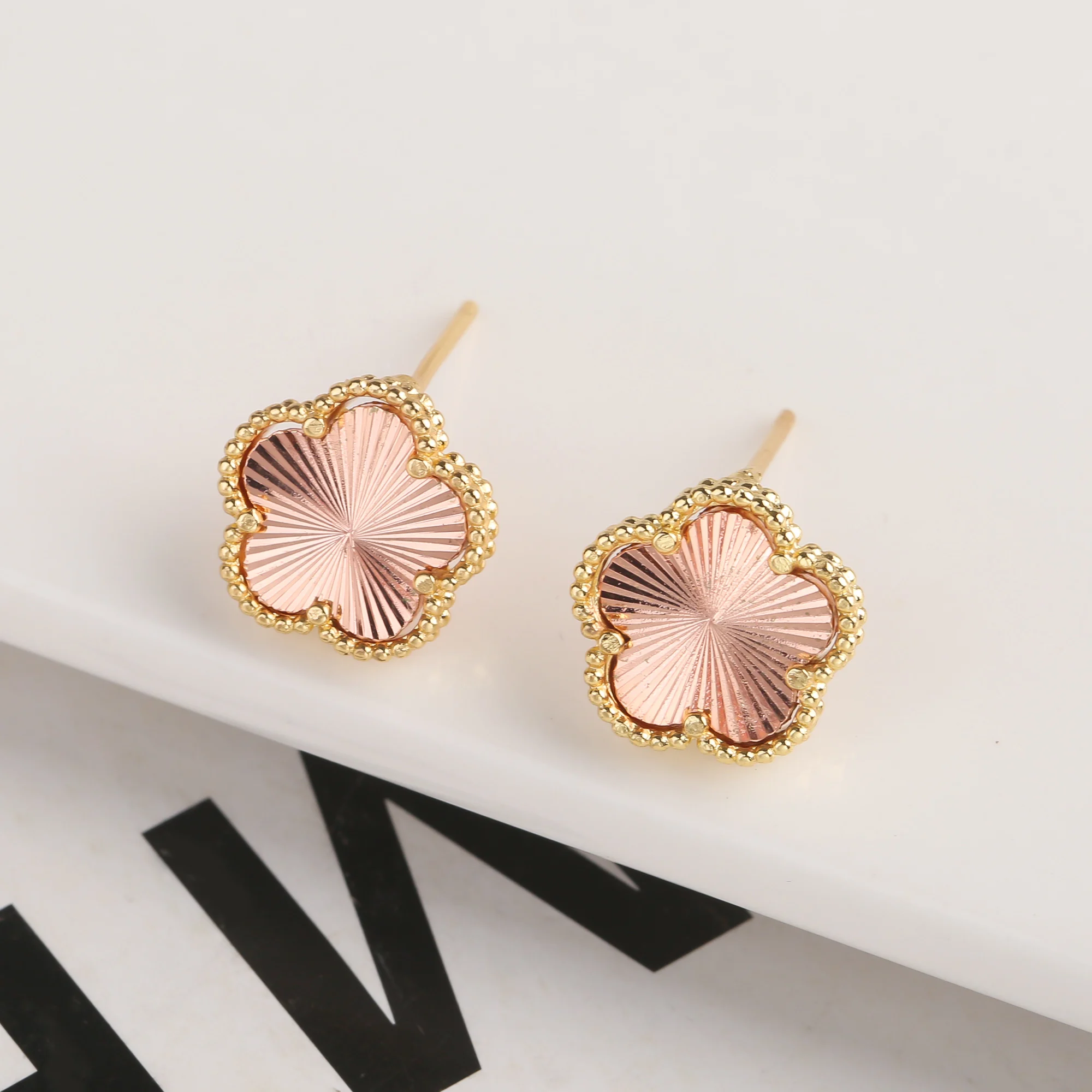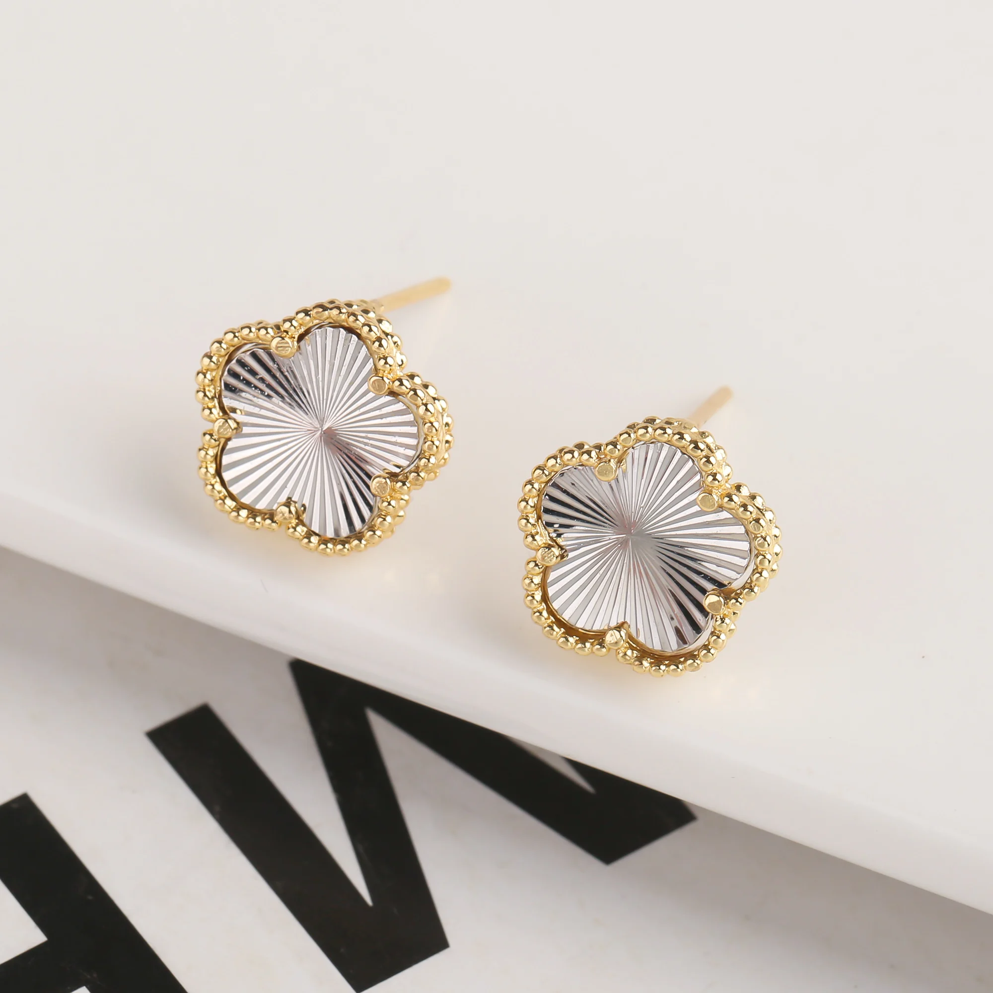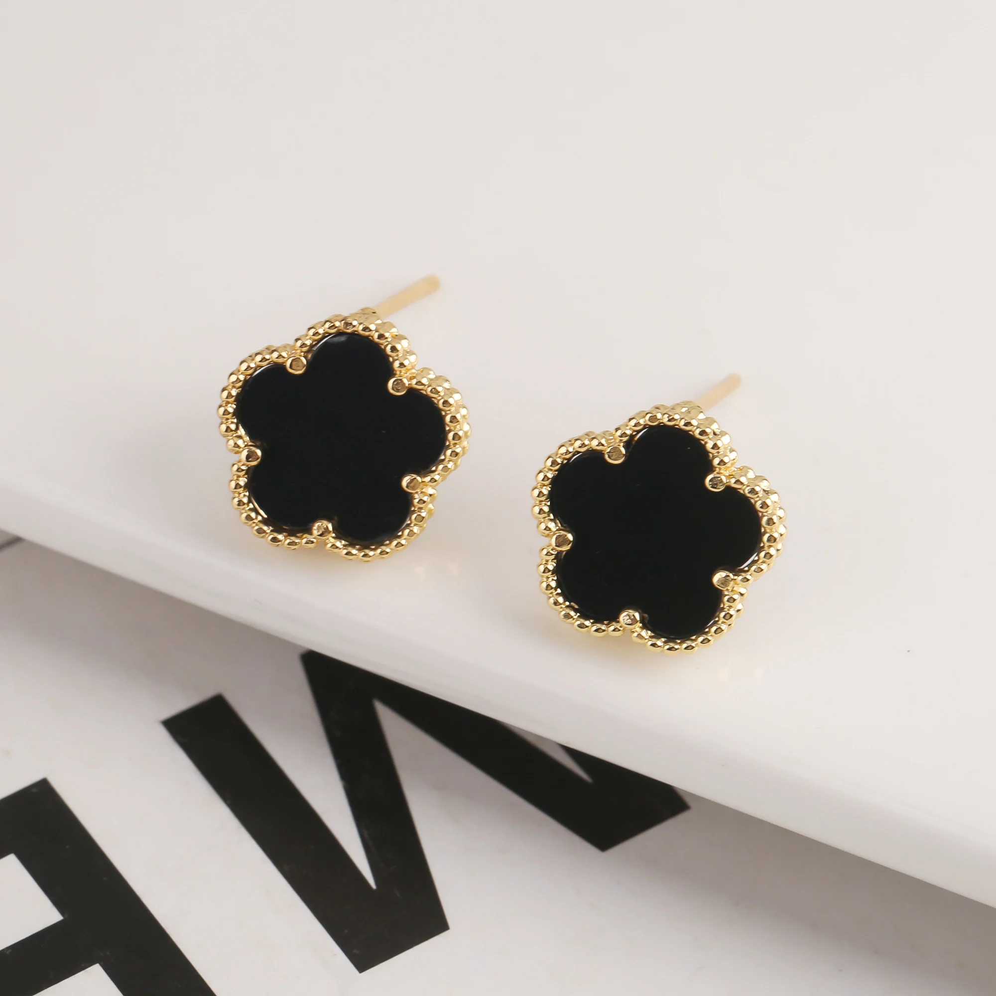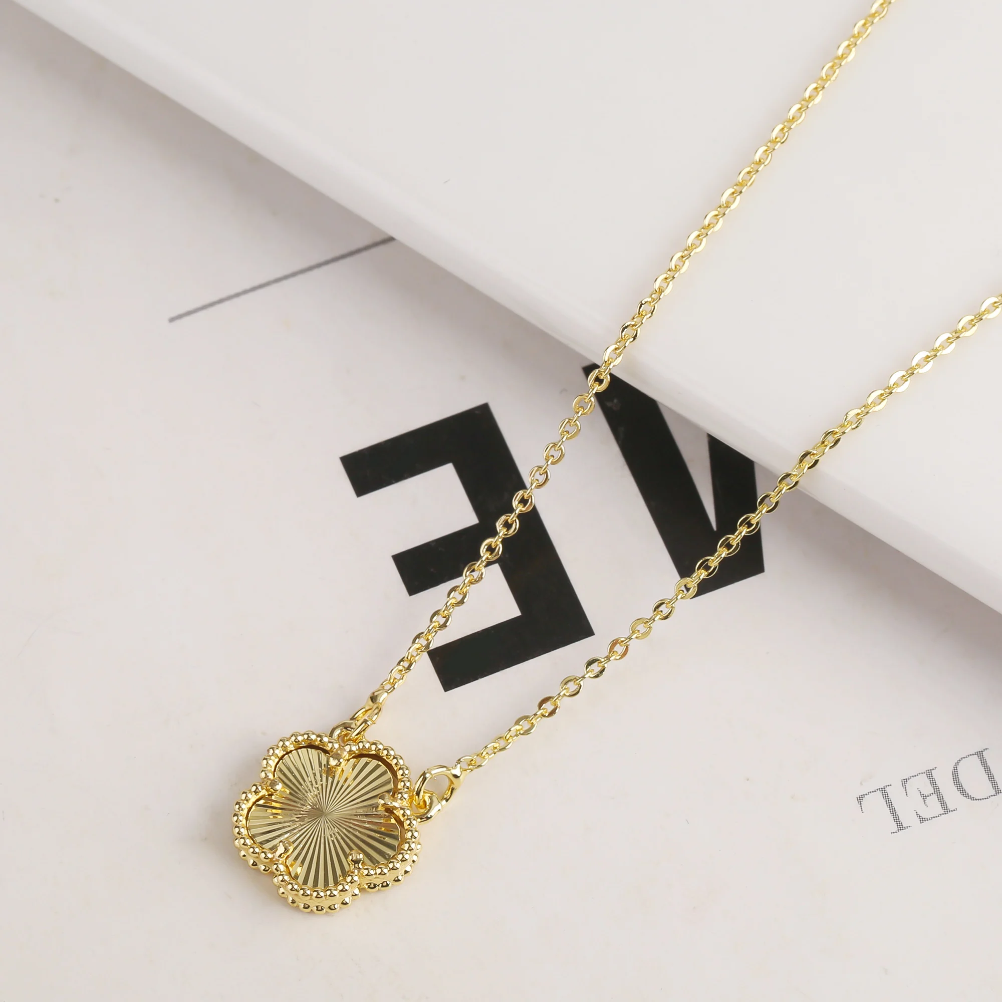 18K Gold Plated High Quality Simple Plant Five Leaf Flower Natural Stone Metal Pendant Necklace Earring Set Women's Clover