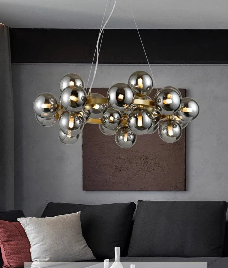 2025 Modern Glass Bubble Pendant Lamp Round Chandelier Light Fixture for Living Room Dining Room Bedroom Kitchen