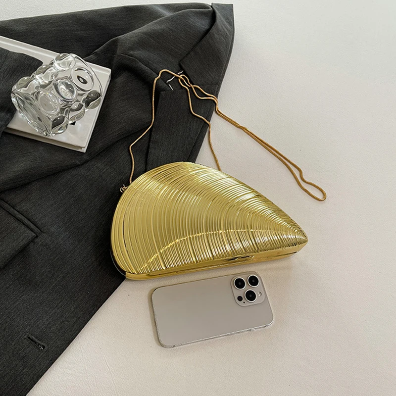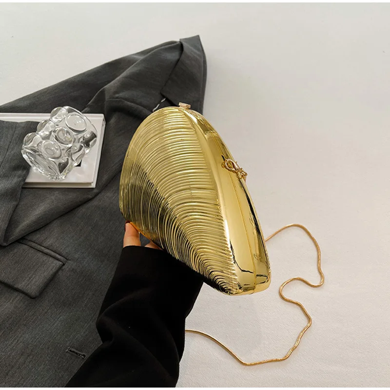 2025 Retro Gold Women's Shell Clutch High-end Fashion Chain Bag Creative Conch Box Bag European And American Women's Evening Bag