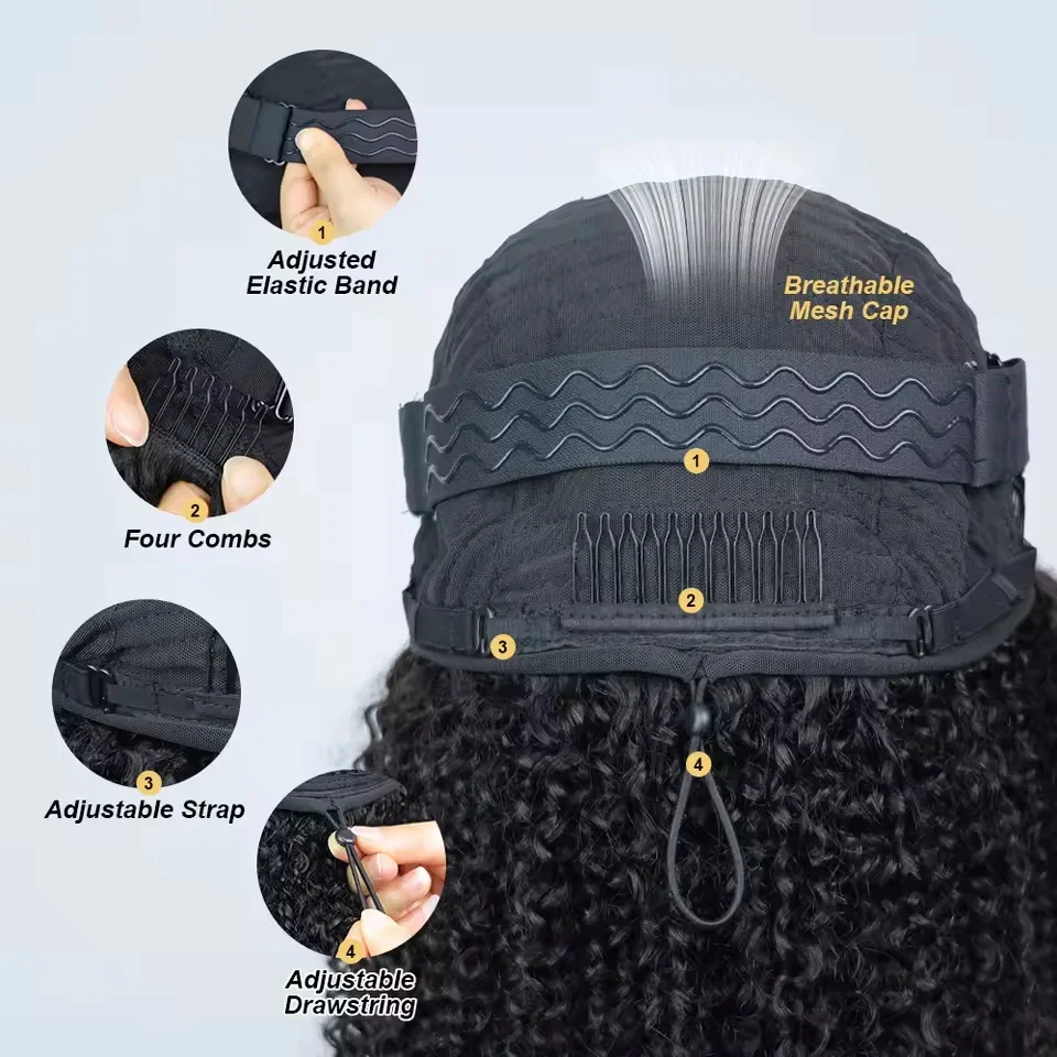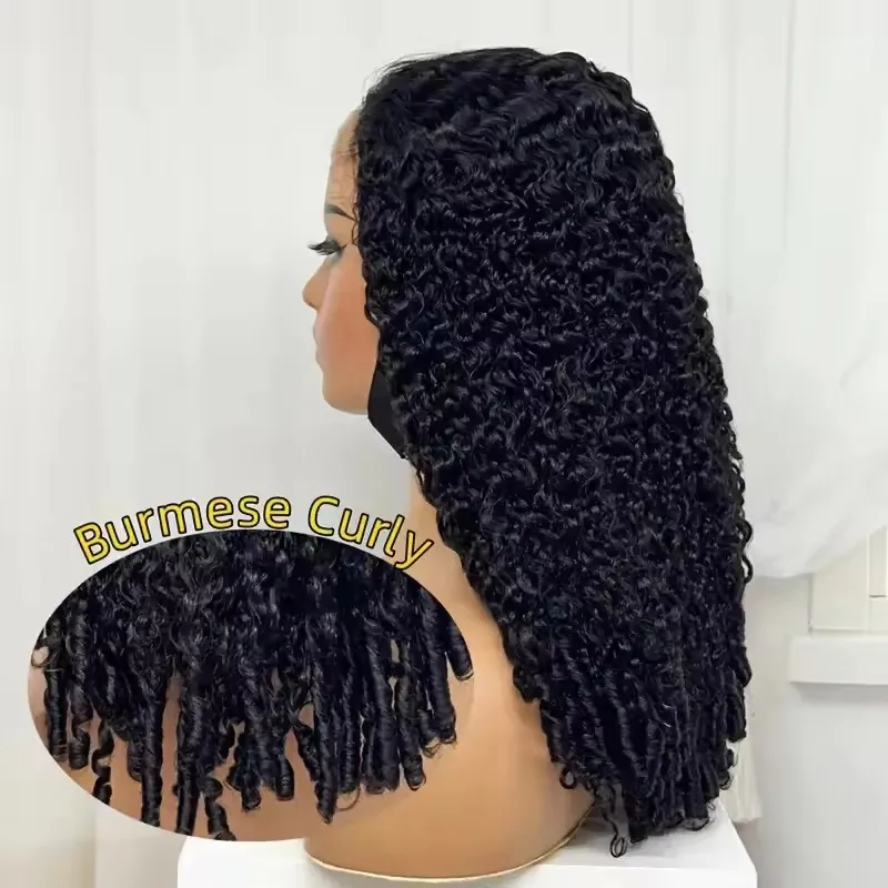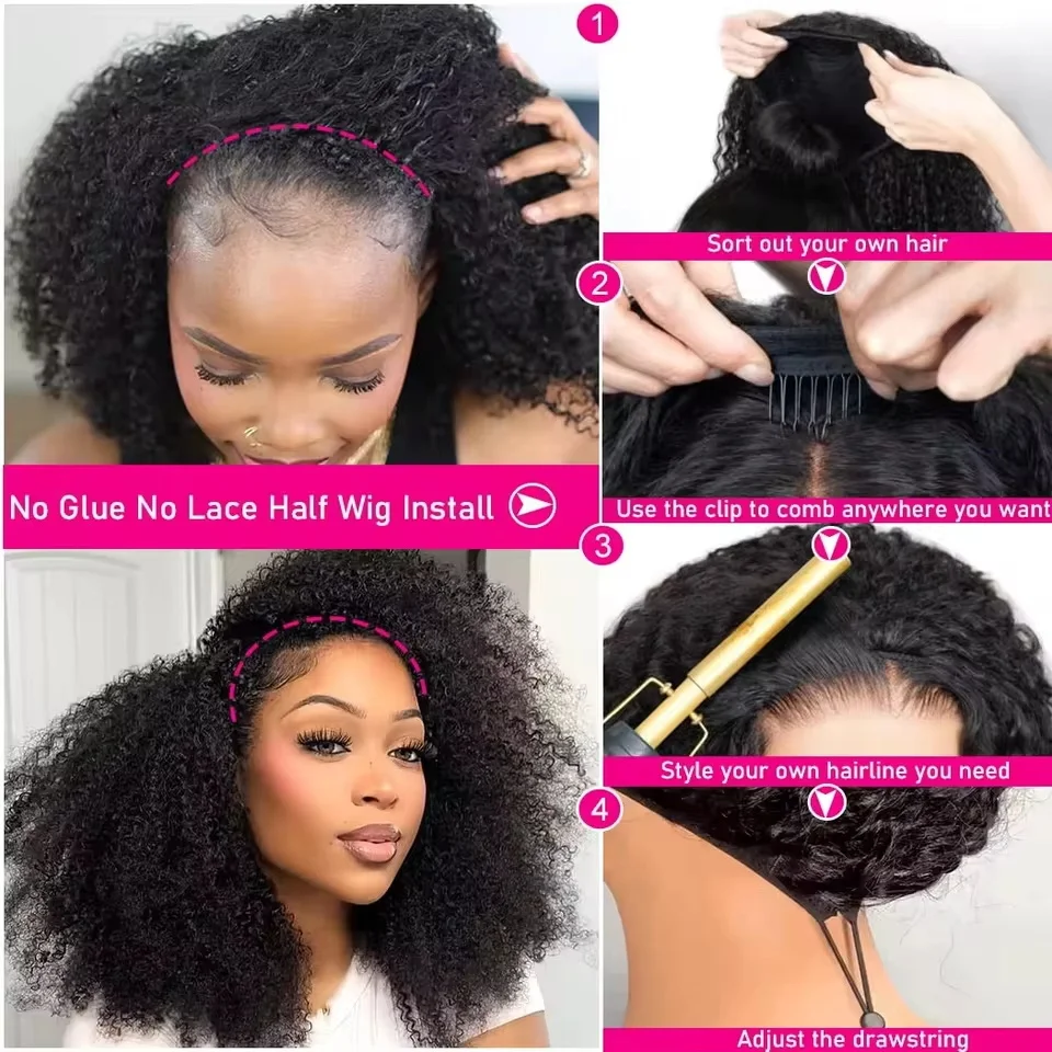 250% Glueless Wigs Human Hair Burmese Curly Headband Wig Upgrade 3 IN 1 Half Wig With Drawstring Seamless Clip Ins Flip Over