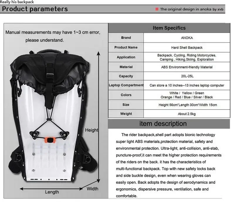 25L Motorcycle Riding Hard Shell Luggage Backpack Shoulder Waterproof Motocross/Moto Racing Protective Drop ABS Tank Bags