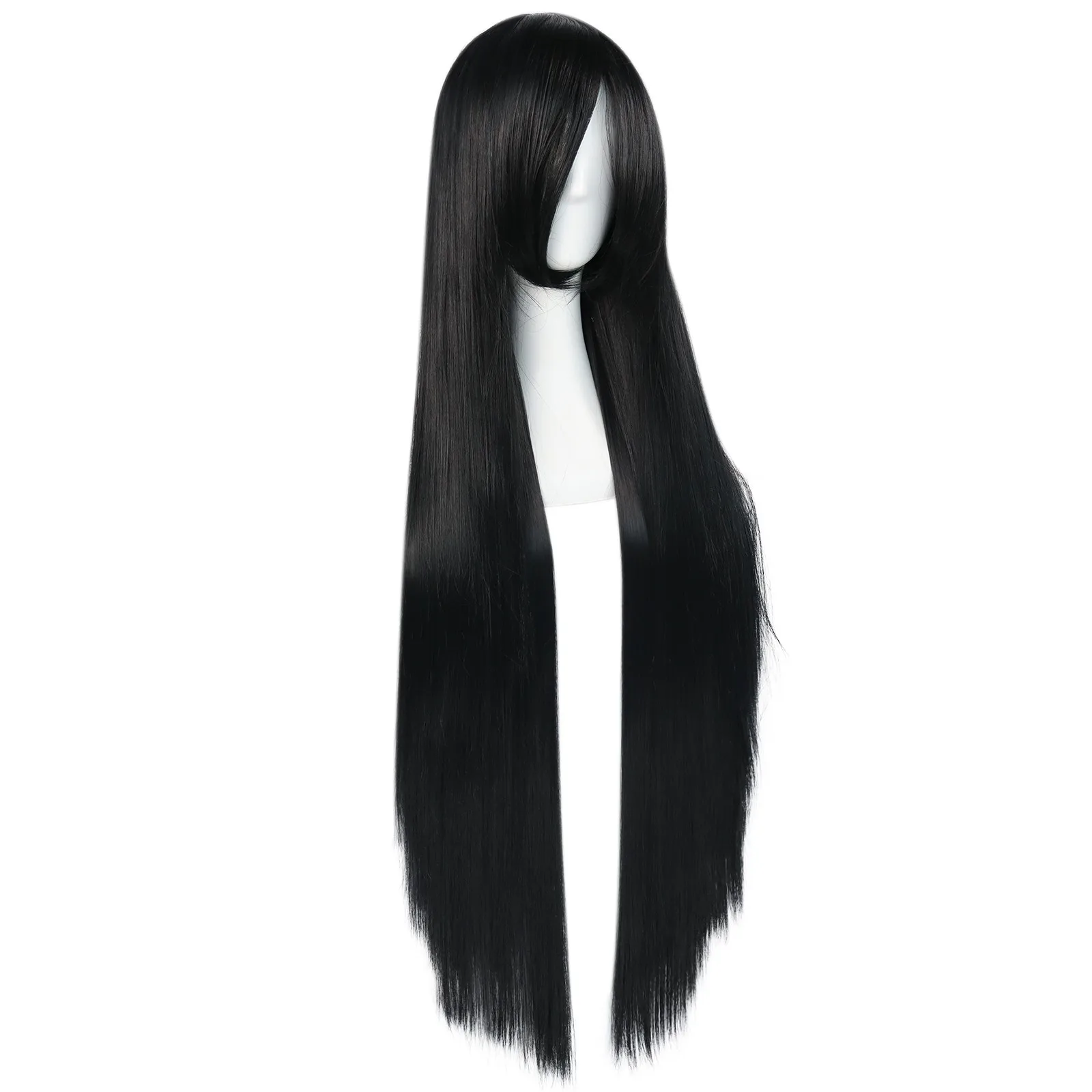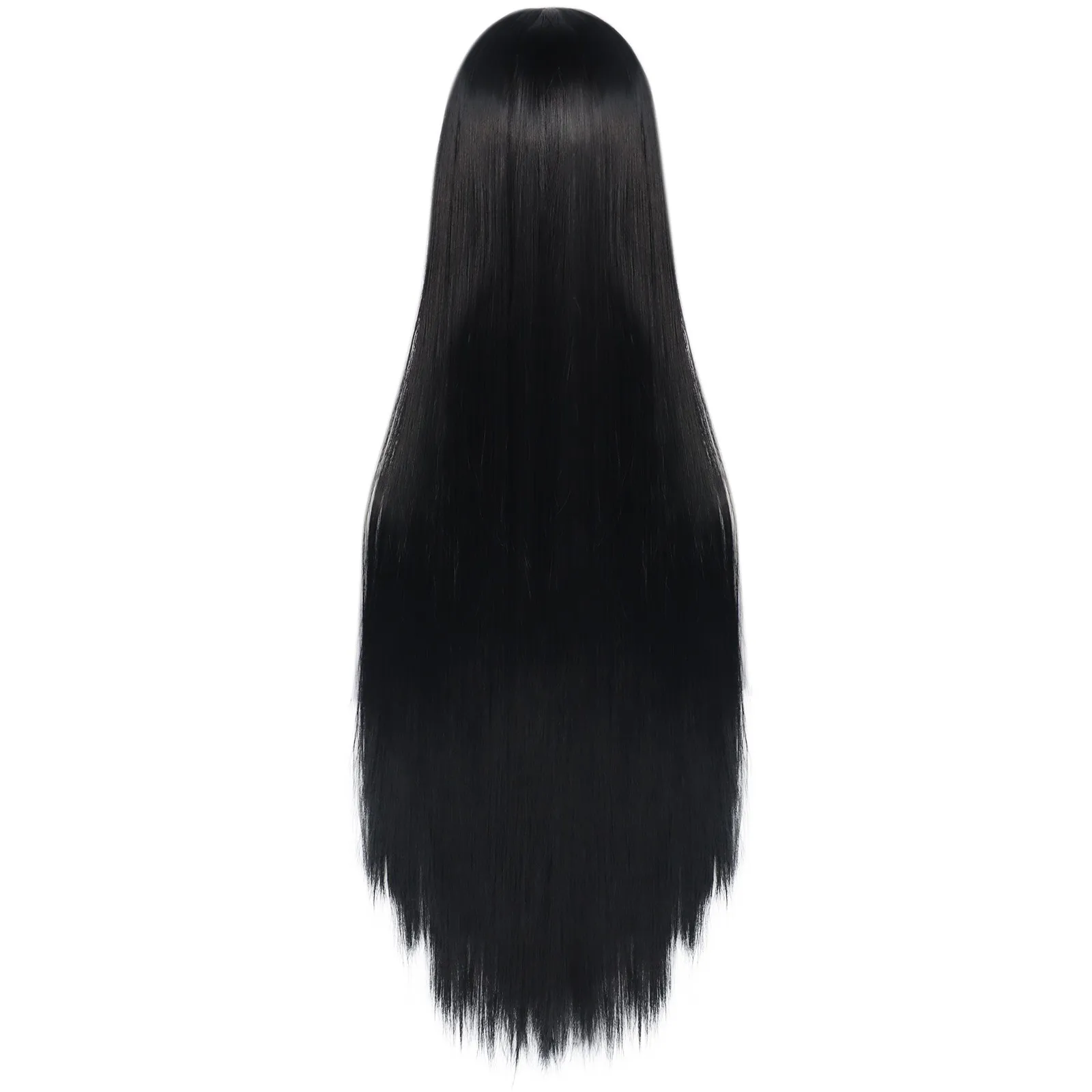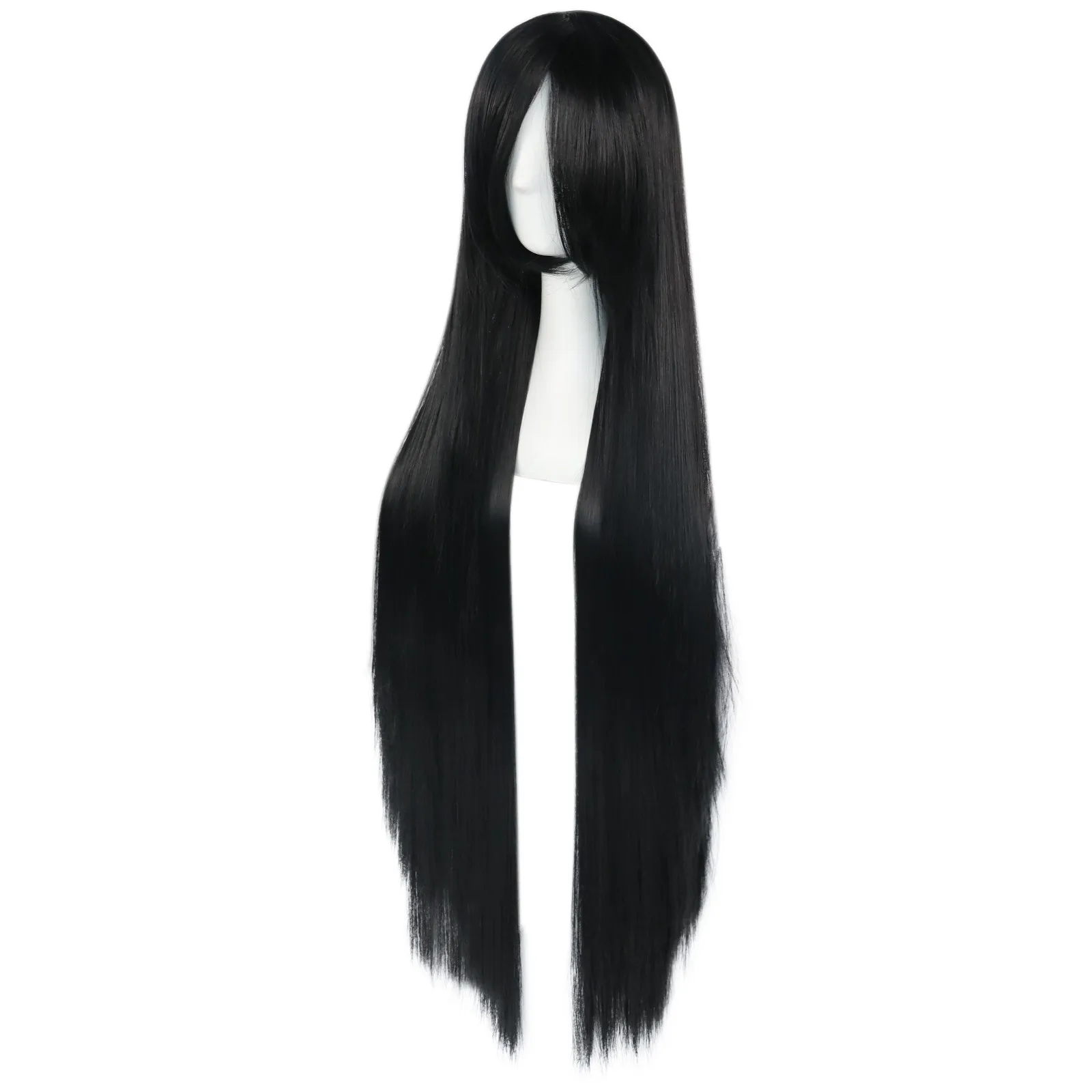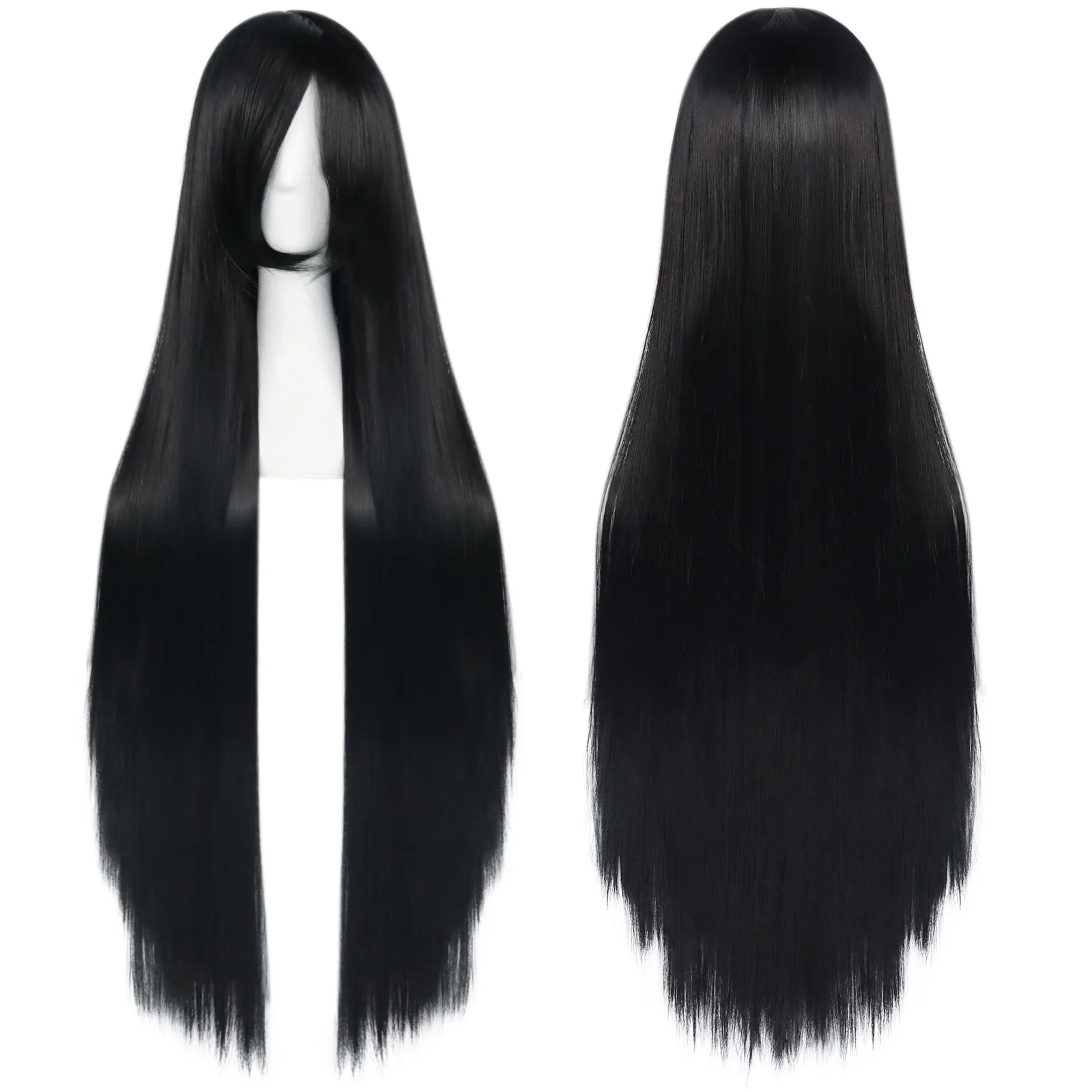 38inch Synthetic Super Long Silky Straight Black Cosplay Wig with Bangs for Halloween & 1pc Wig Cap