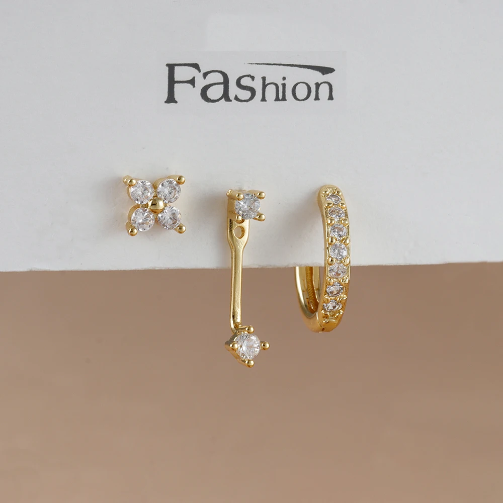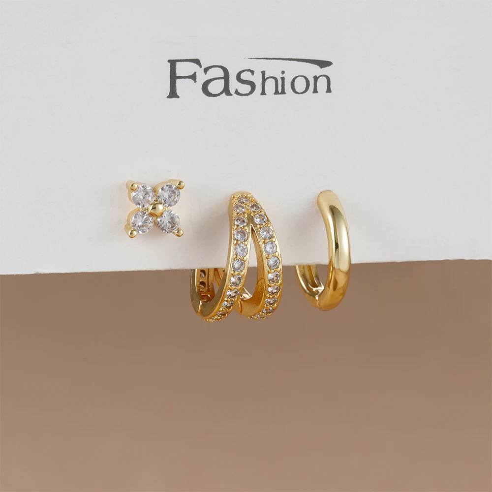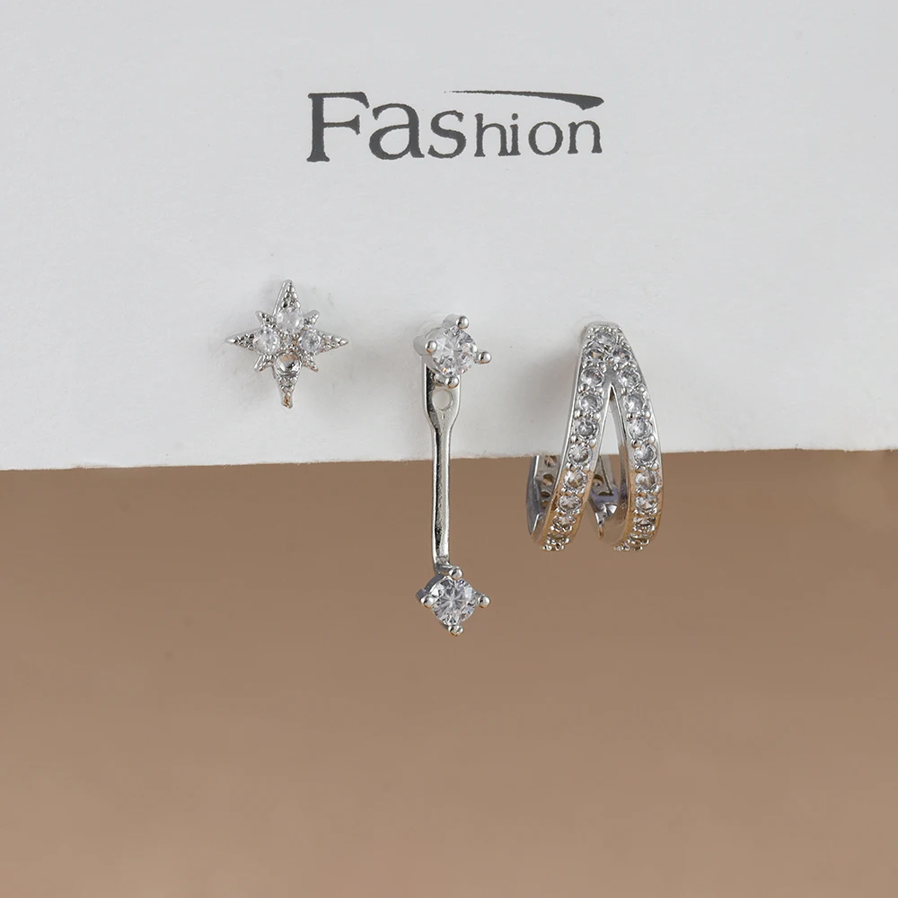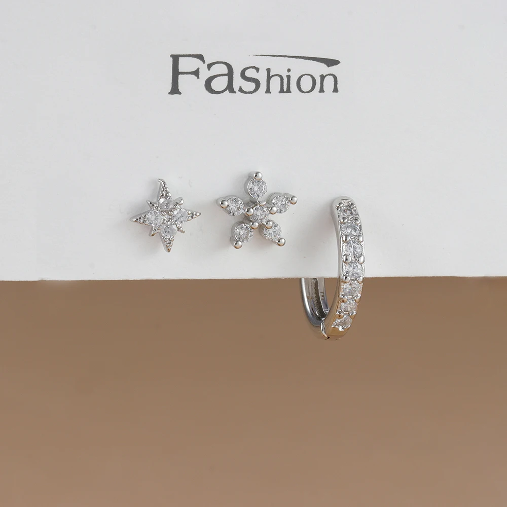 3PCS Trendy Double-layer Circle Cubic Zircon Star Hanging Earrings Set For Women Korean Fashion Jewelry pendientes mujer