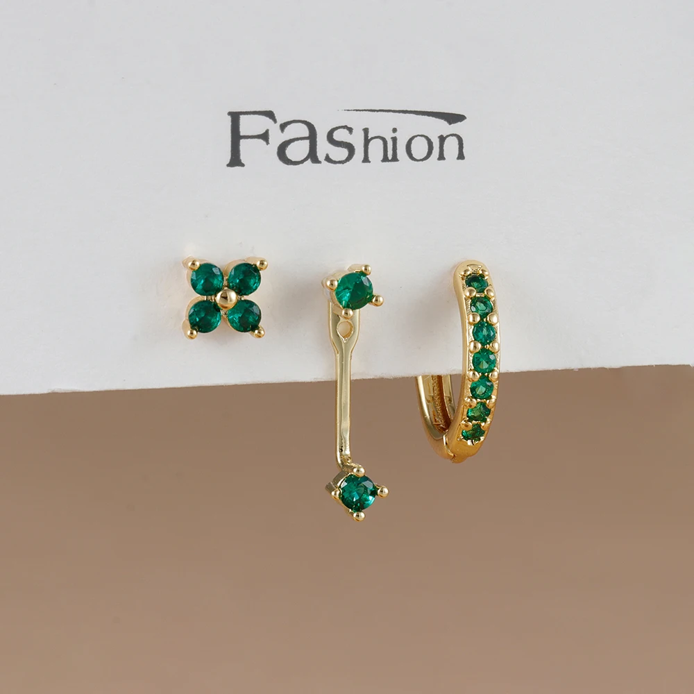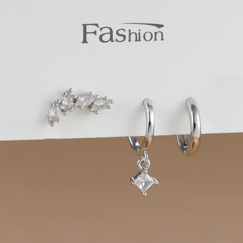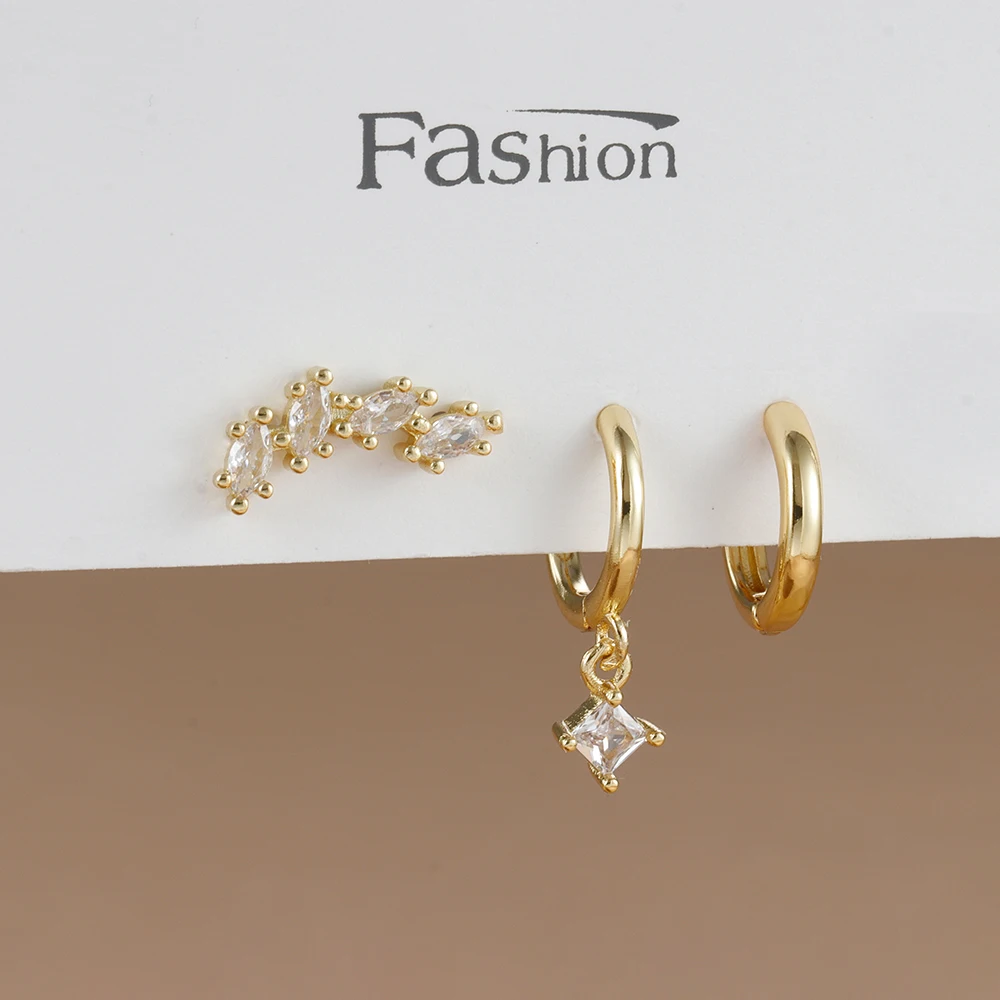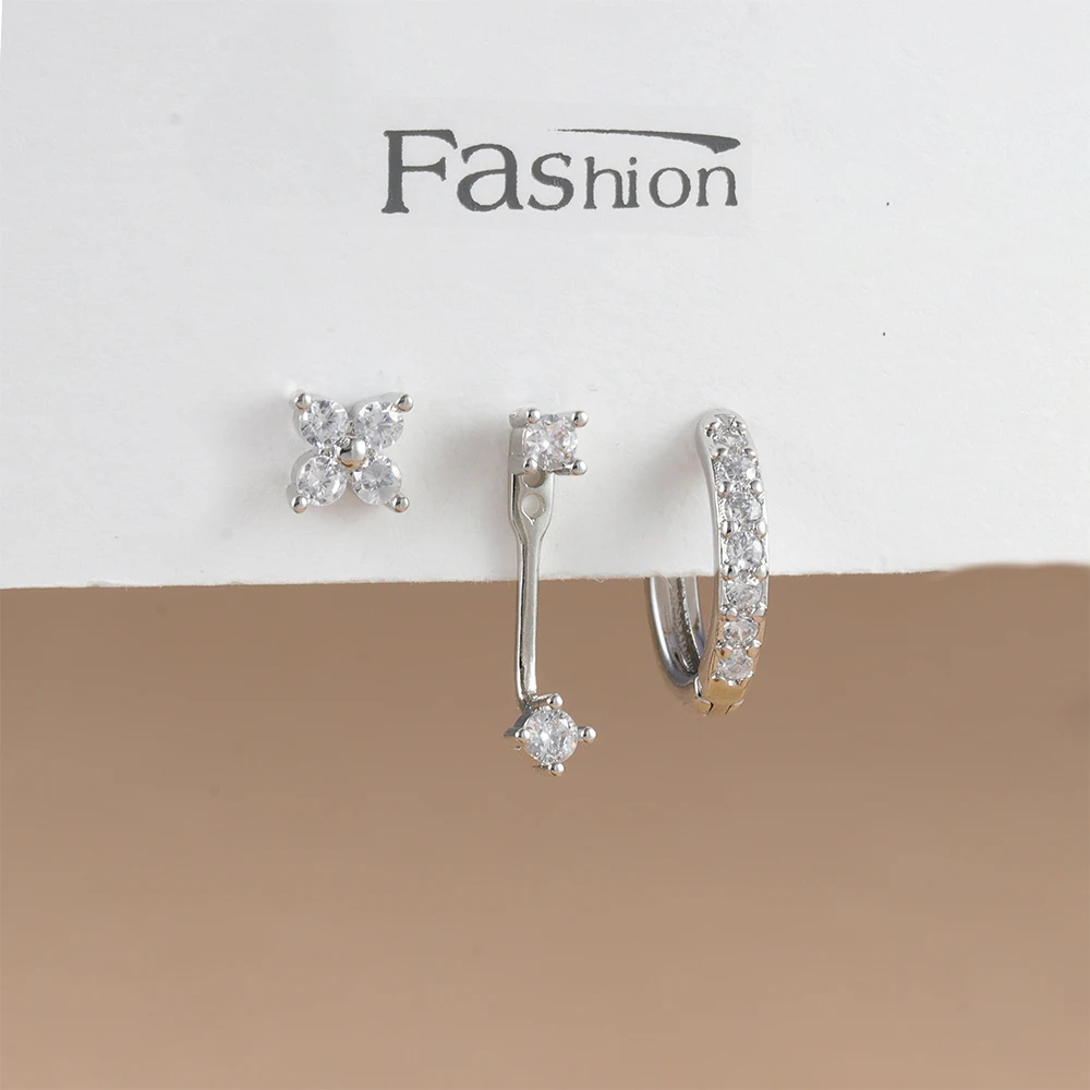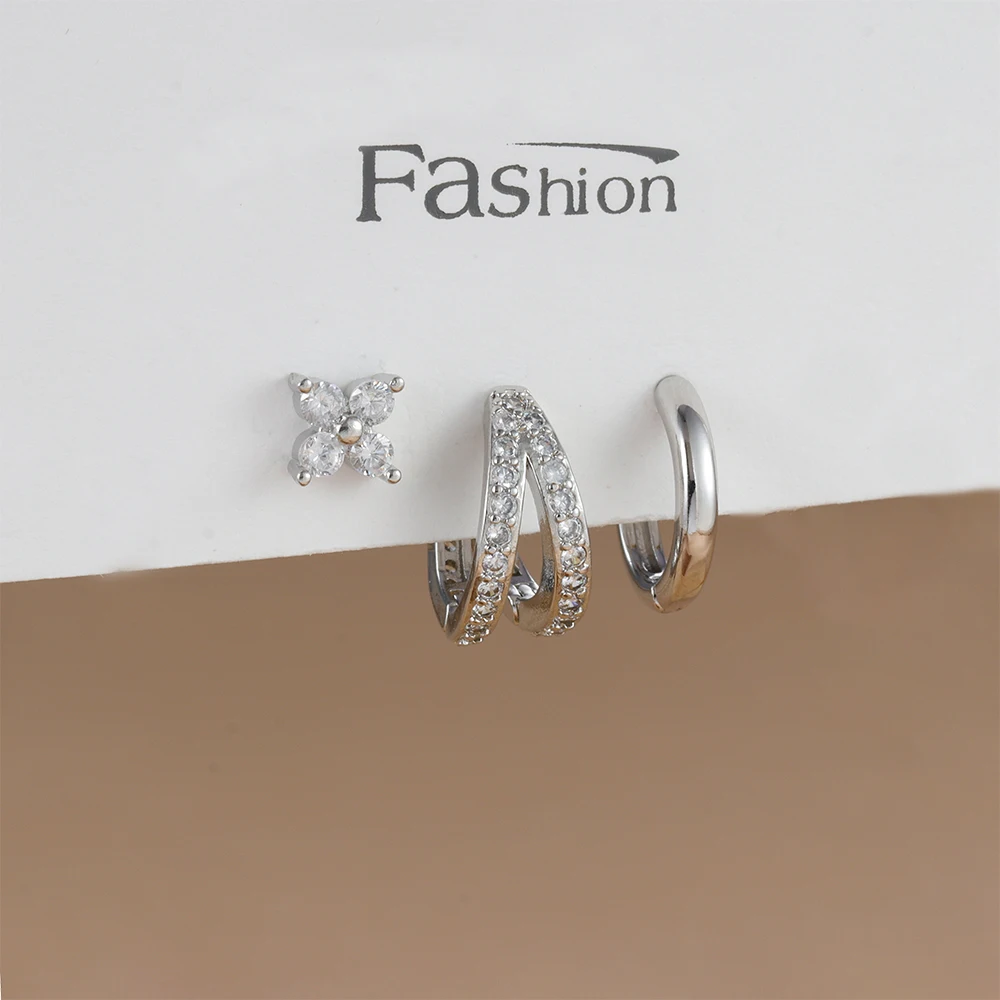 3PCS Trendy Double-layer Circle Cubic Zircon Star Hanging Earrings Set For Women Korean Fashion Jewelry pendientes mujer