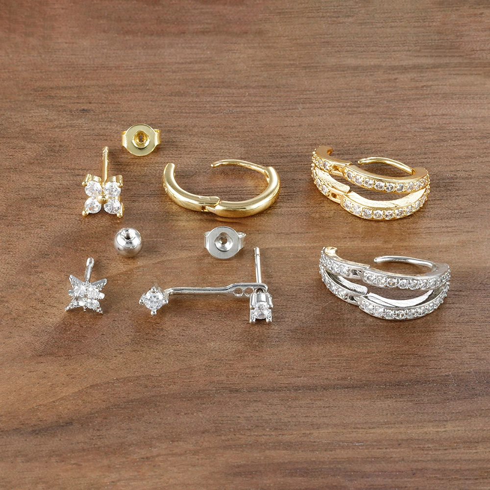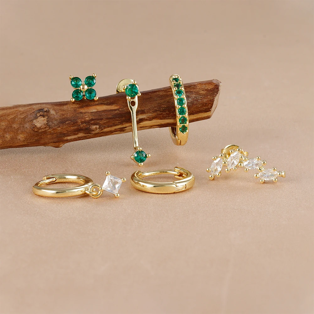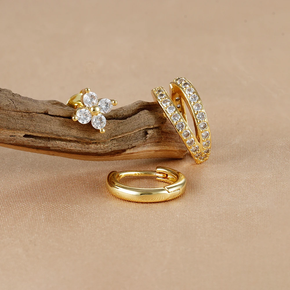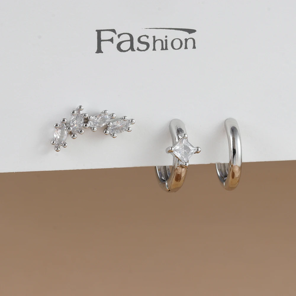 3PCS Trendy Double-layer Circle Cubic Zircon Star Hanging Earrings Set For Women Korean Fashion Jewelry pendientes mujer