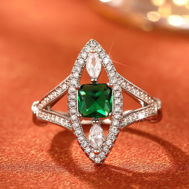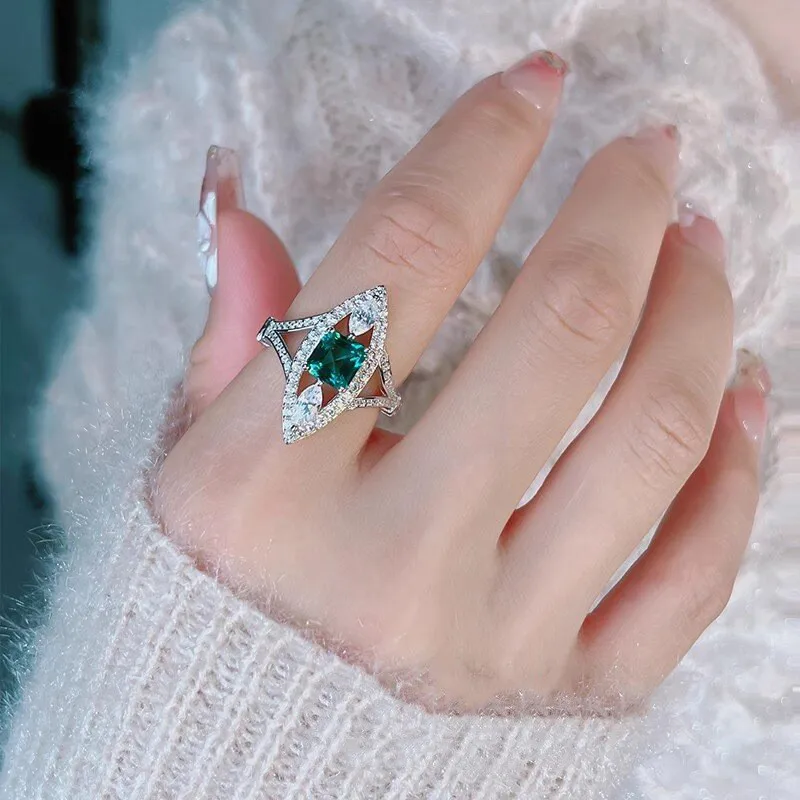 925 Sterling Silver Large Amethyst Gem Horse Eye Zircon Female High Quality Party Jewelry Elegant CZ Stone Ring for Women