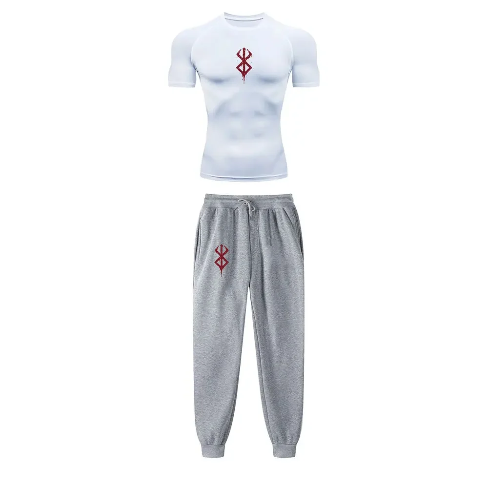 Anime Compression Set Berserk Guts Print Performance GYM Set Men's Athletic Workout Quick Dry Shirts+Sweatpants Unisex Sportwear