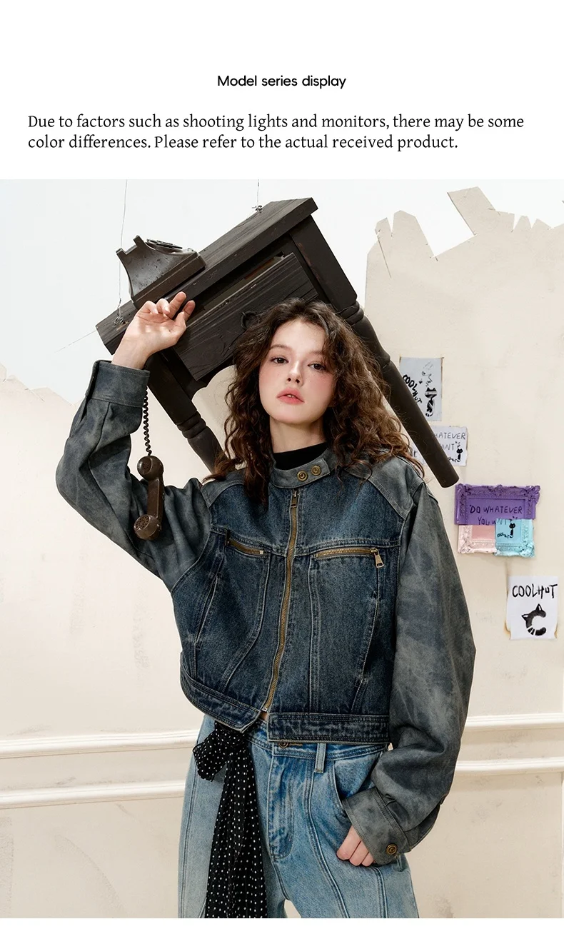 Infuse a vintage vibe into your wardrobe with this American-style denim jacket, perfect for a casual yet chic look.