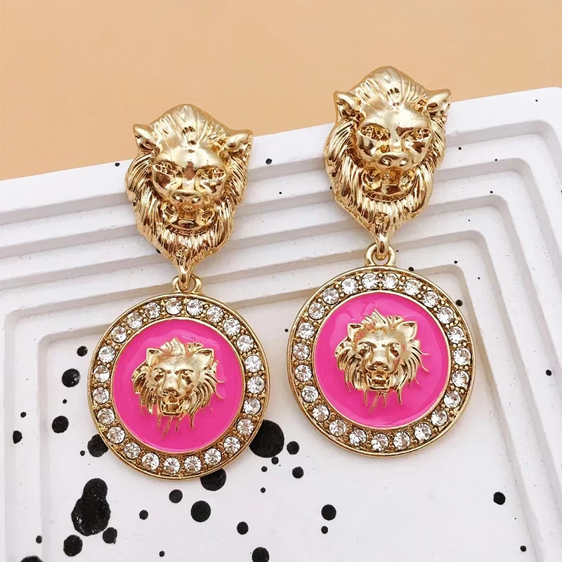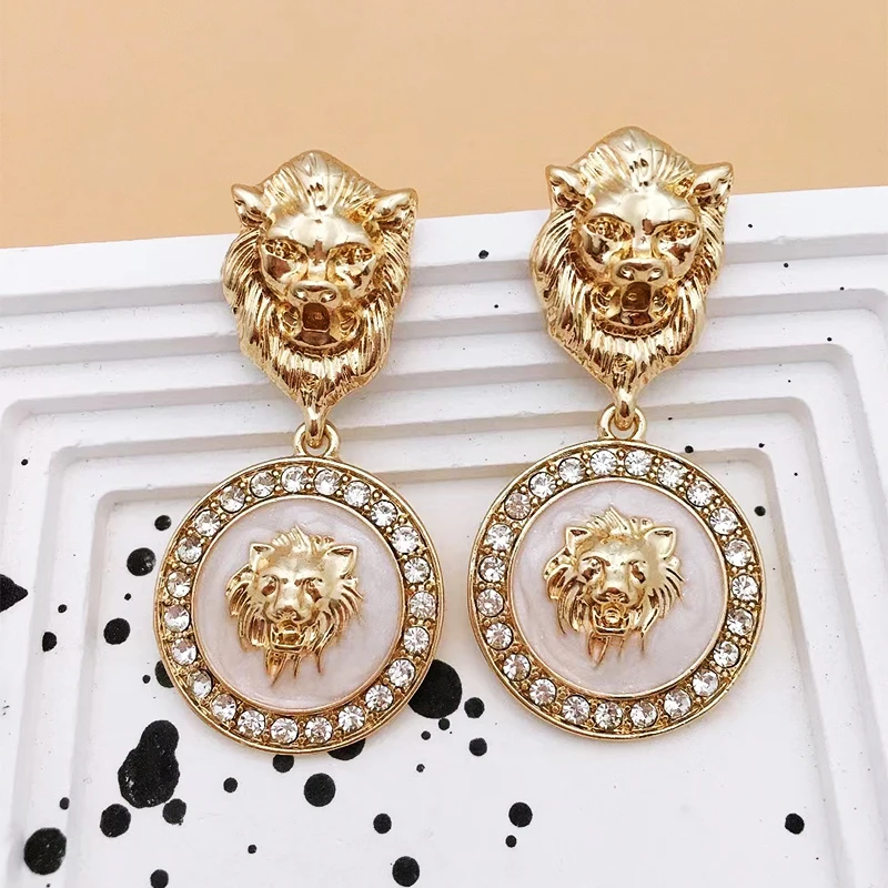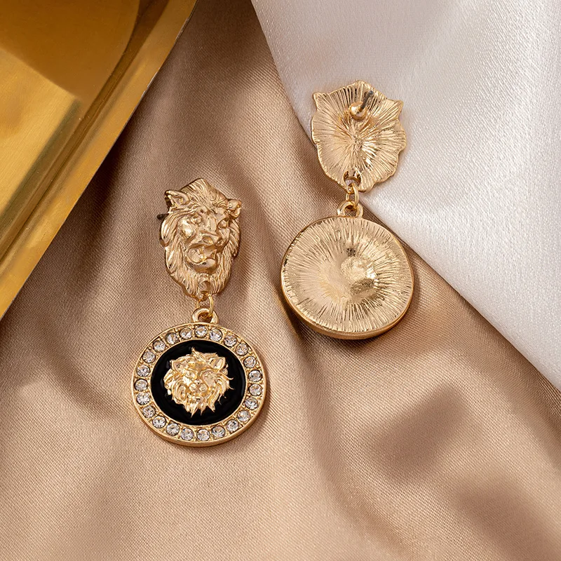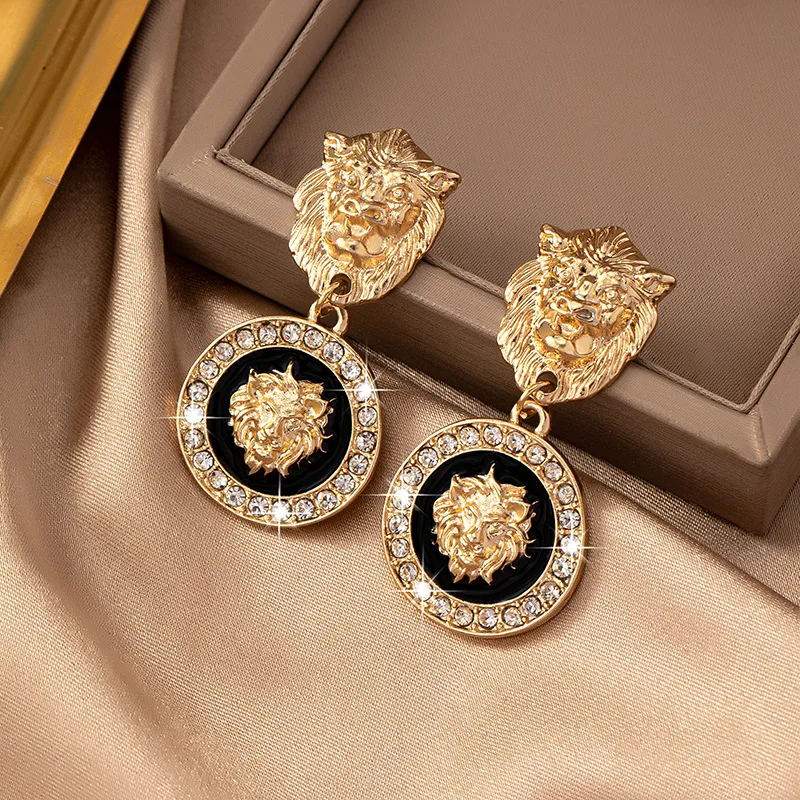 European and American Personality Lion Head Earrings Metal Geometric Exaggerated Punk Retro Female Gothic Ear Jewelry