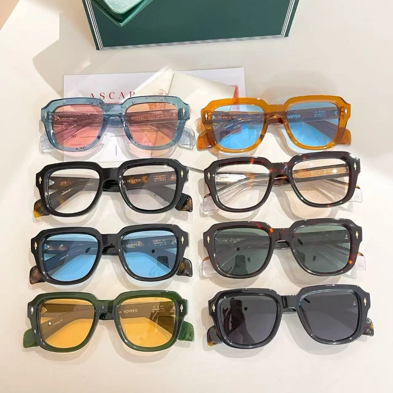 JMM HOPPER Handmade Square Acetate Japanese Designer Sunglasses UV400 – Men's Women's Vintage Photochromic Glasses with Case
