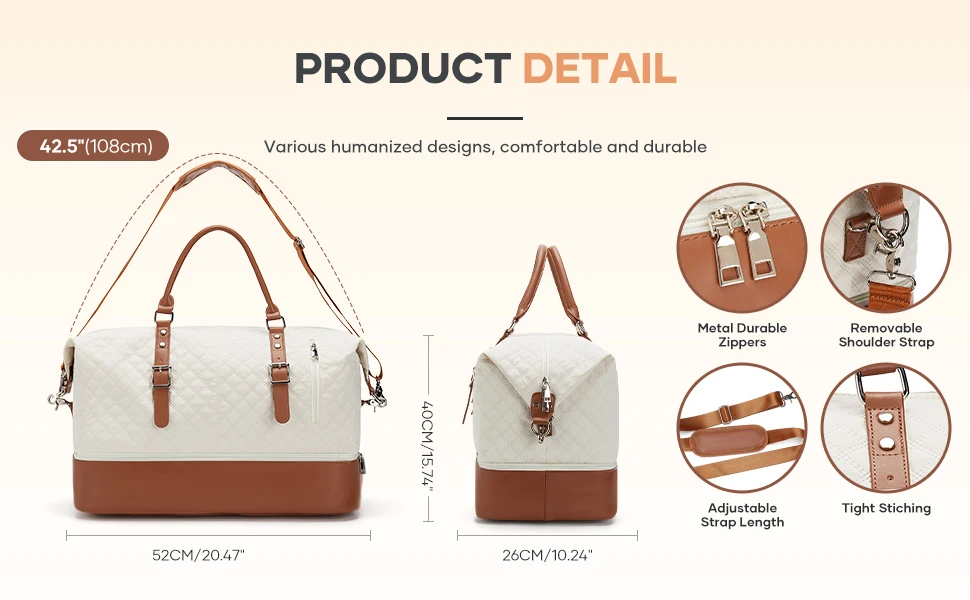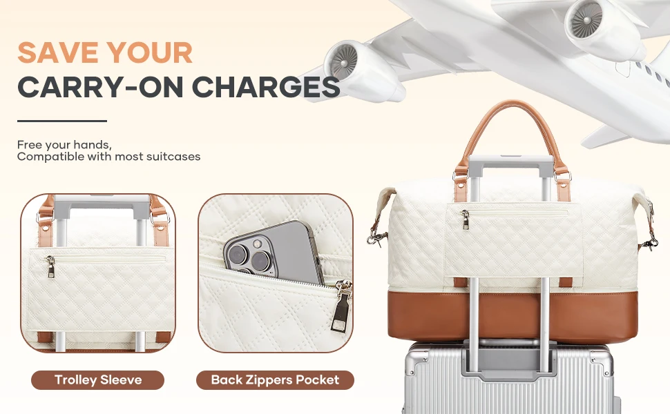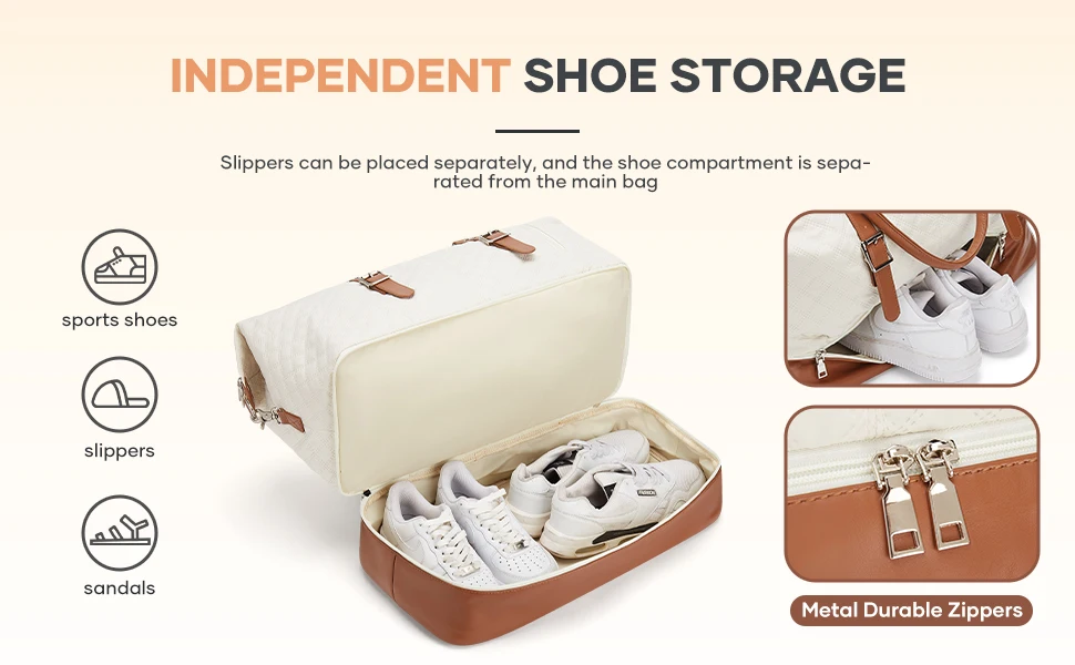【Separate Shoes Compartment】The shoe compartment of this women's travel bag is made of high-quality waterproof material, which can hold your shoes or dirty clothes for easy separation from clean clothes when traveling.