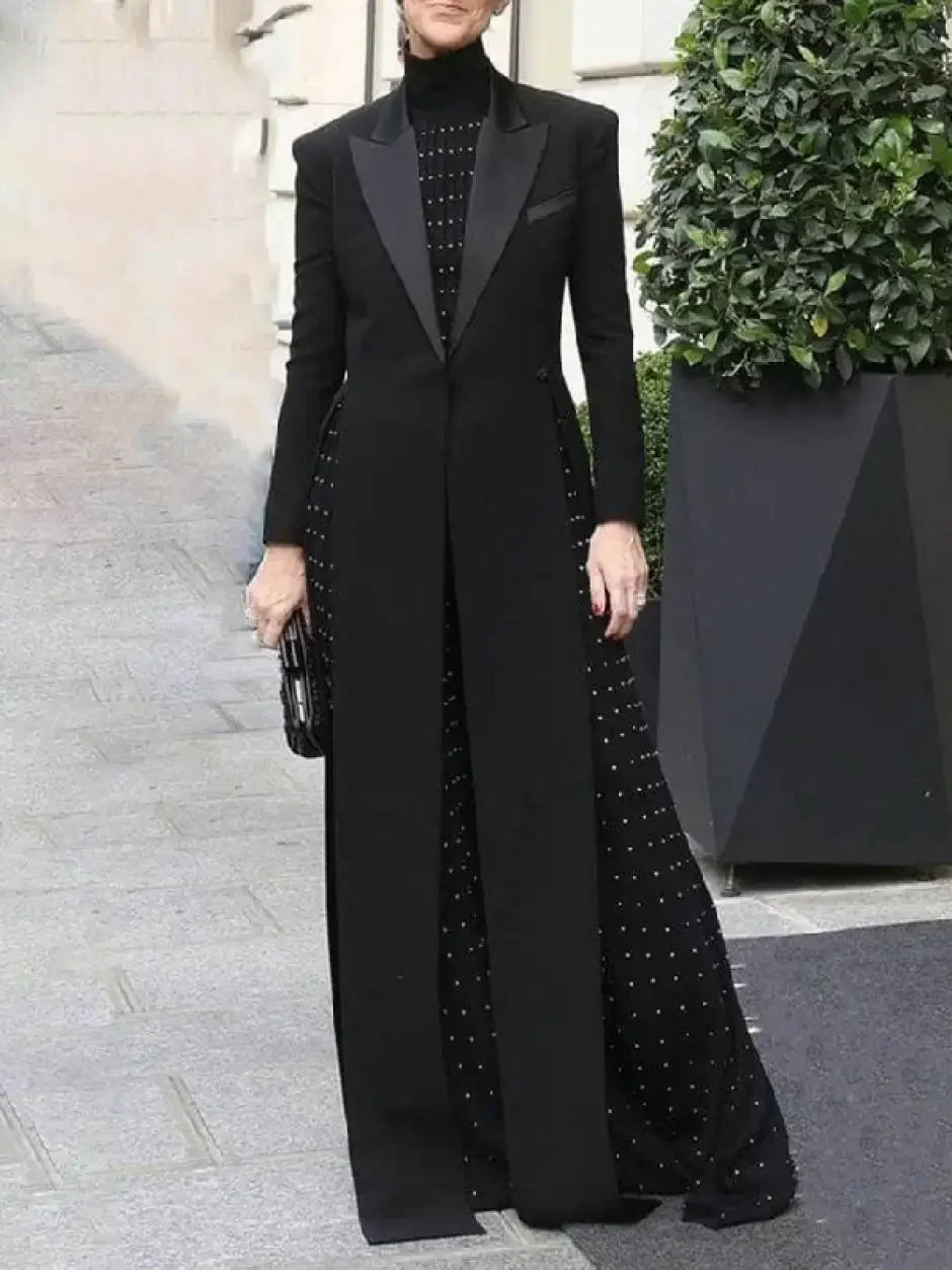 Missuoo Women's Black Extra-long Blazer Coat Lapel V-neck Long Sleeves Split-side Elegant Outerwears 2025 Fall New