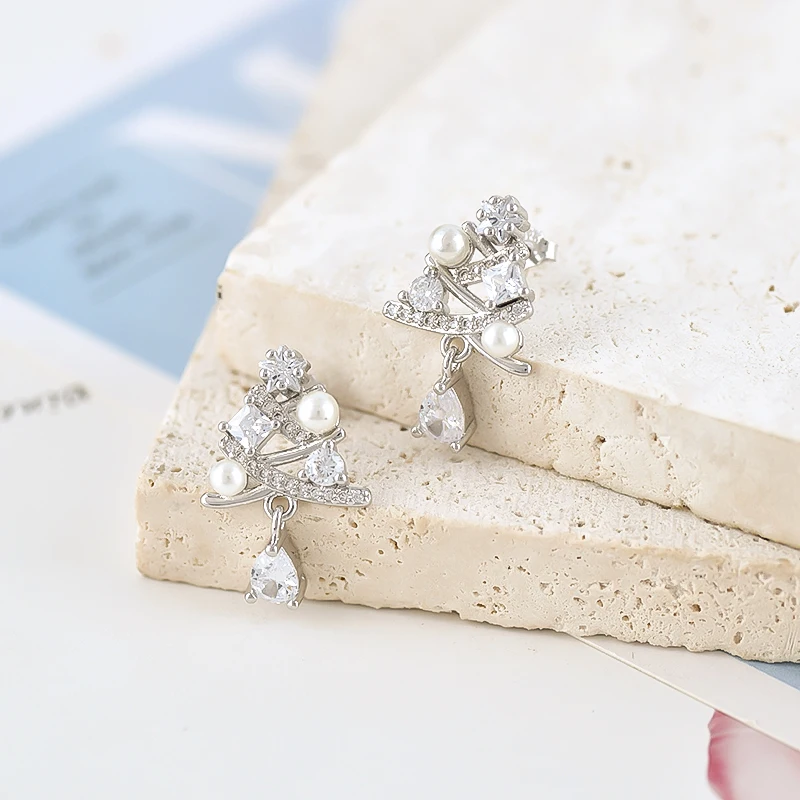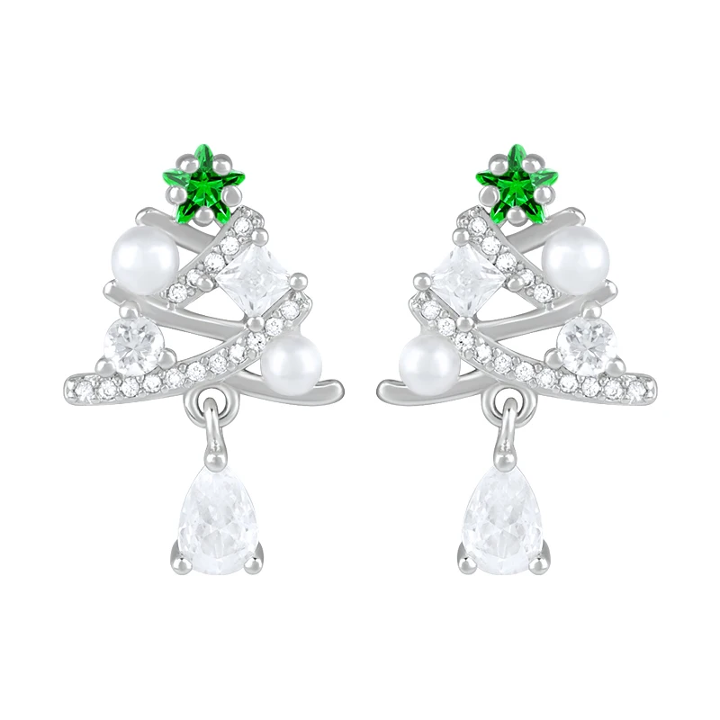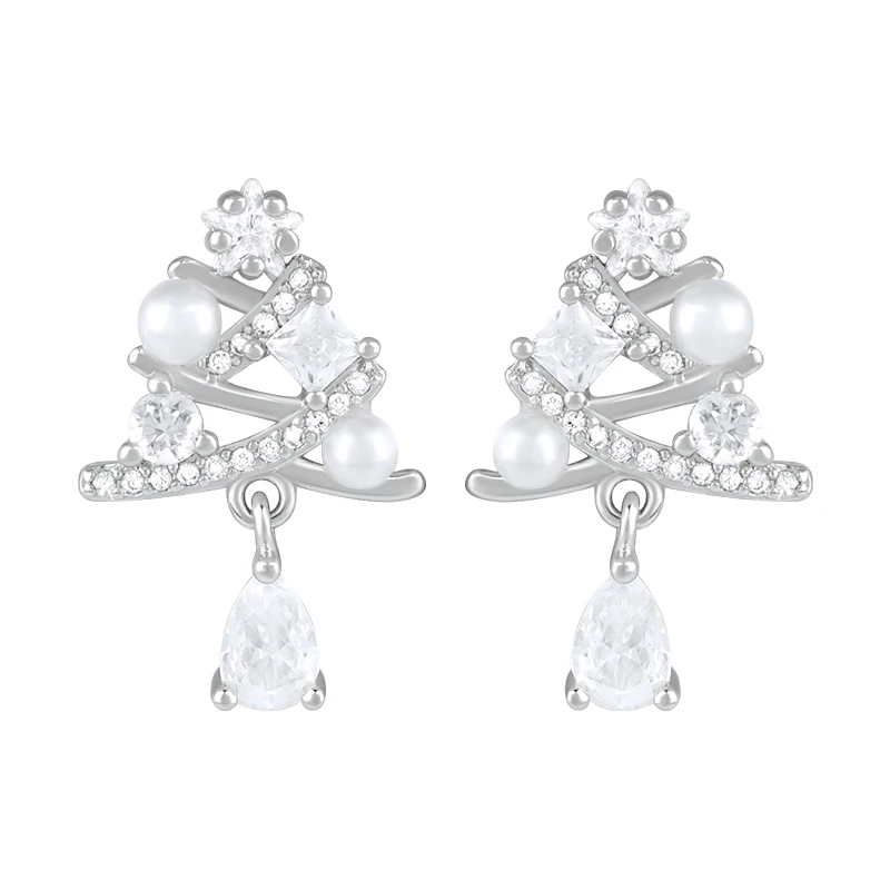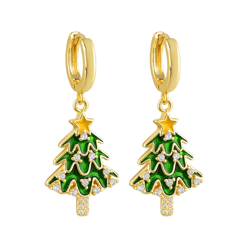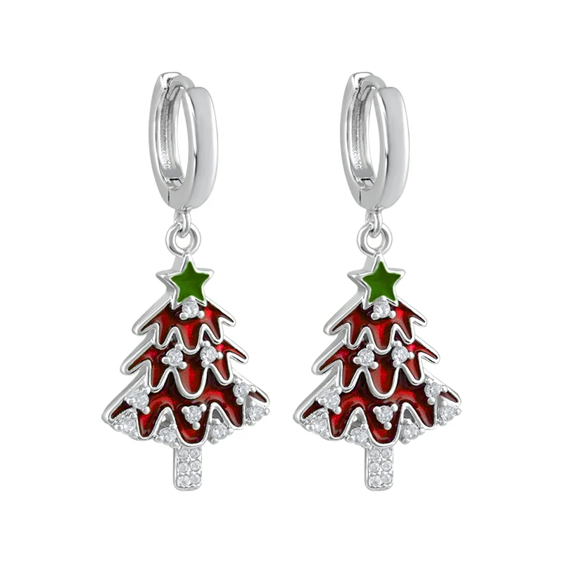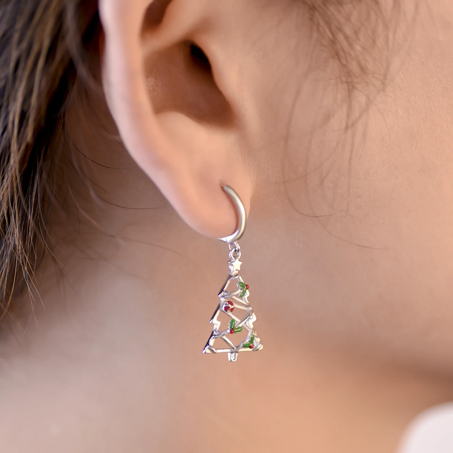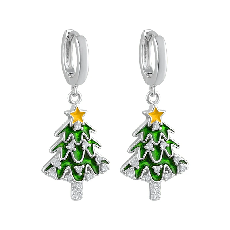 New 925 Sterling Silver Ear Needle Christmas tree/snowflake pendant Hoop Earrings For Women fashion Christmas gifts accessories