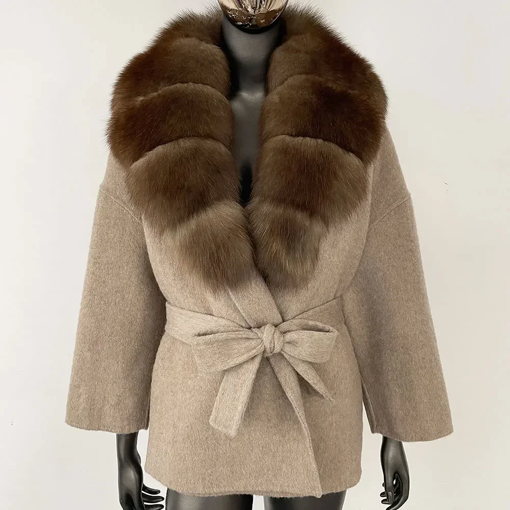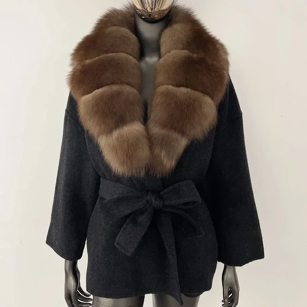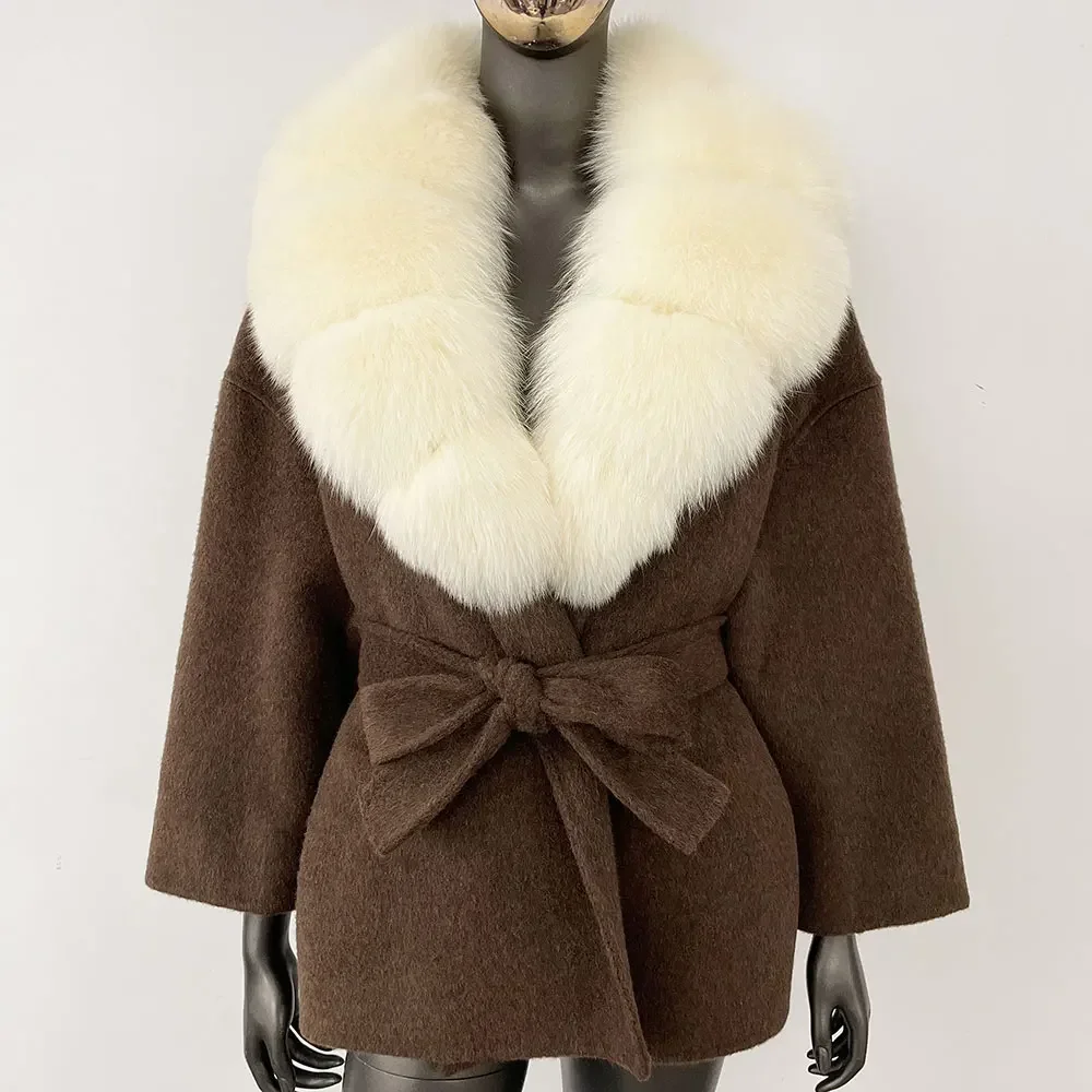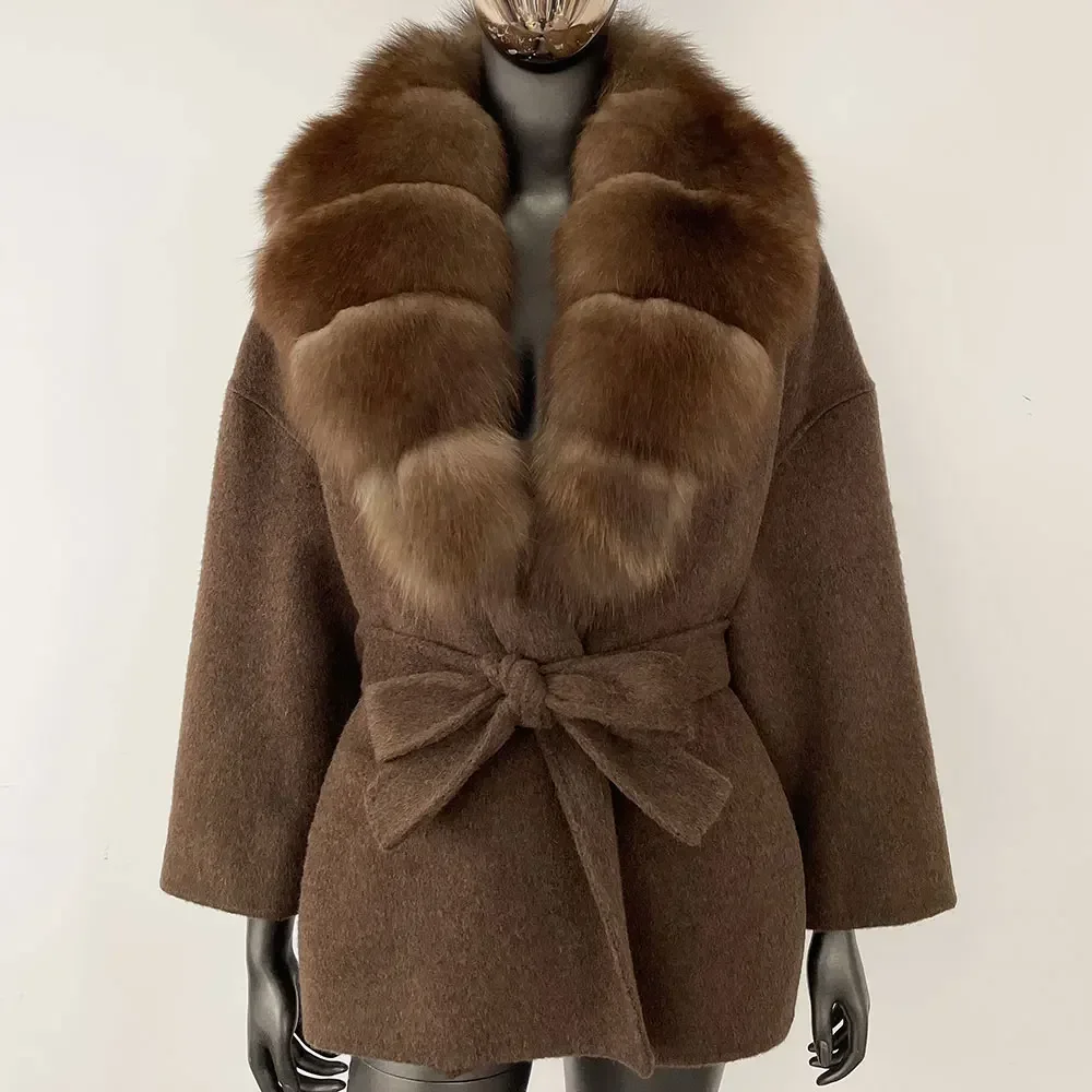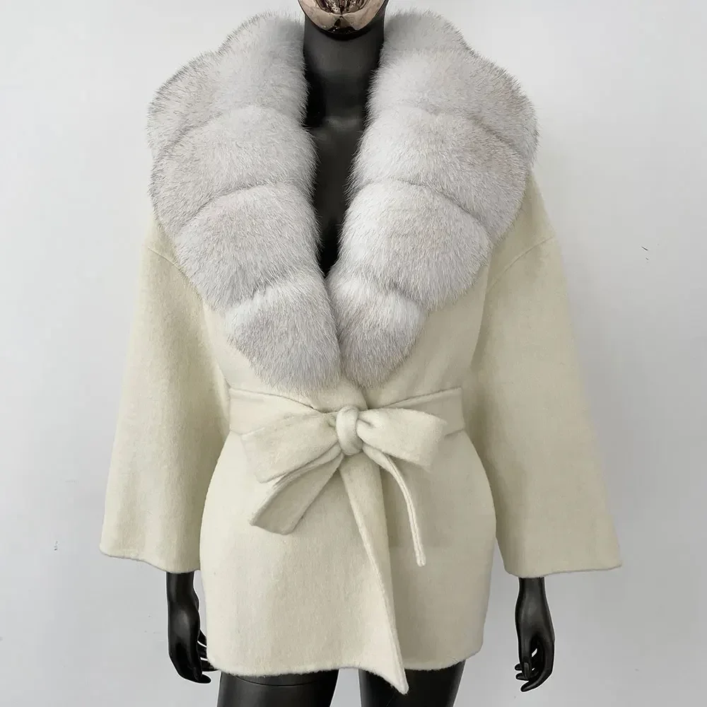 OFTBUY Real Raccoon Fox Fur Coat 2024 New Belt Pocket Winter Blends Wool Coat Women Loose Outerwear Fur Jacket Casual Streetwear