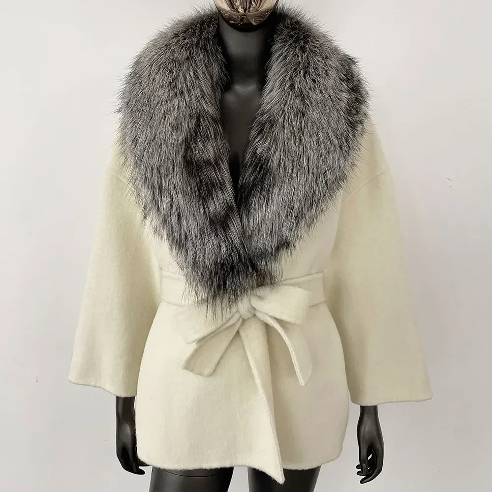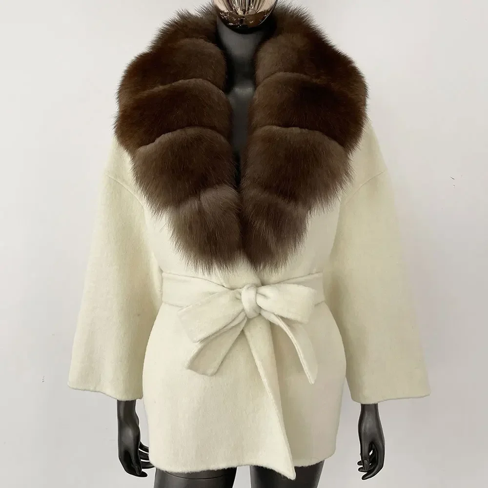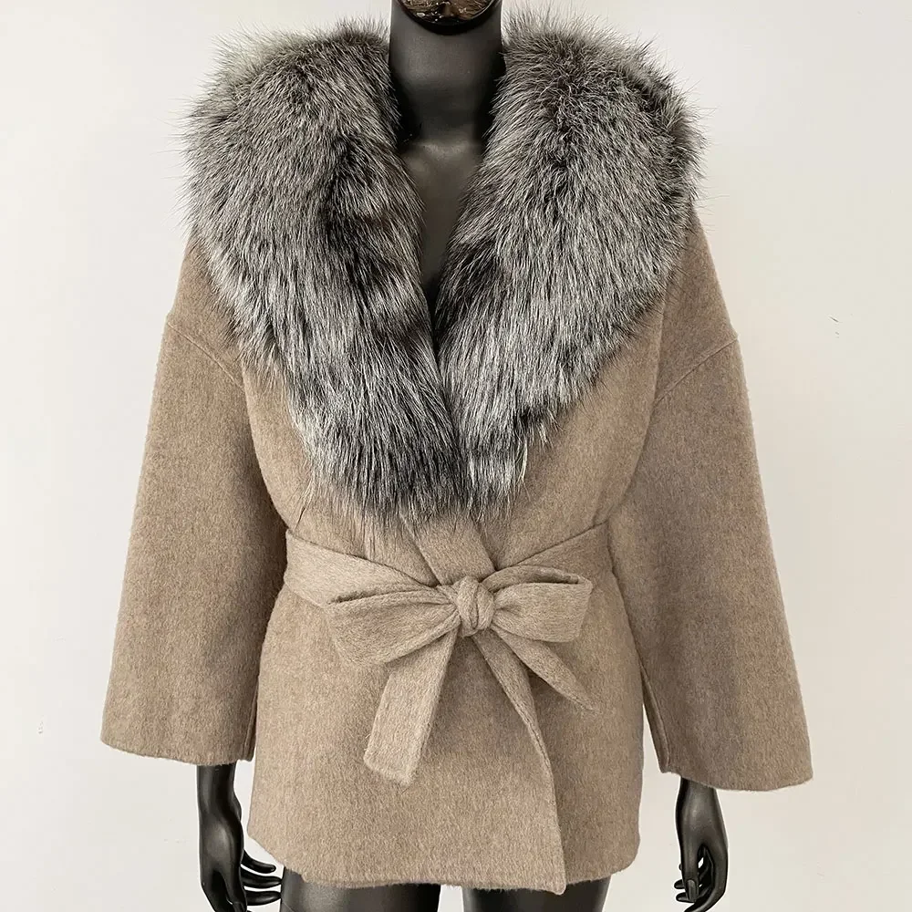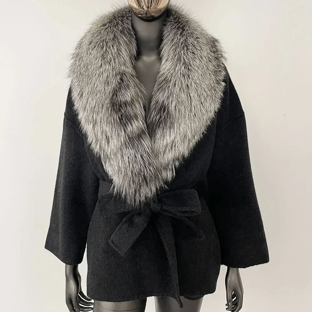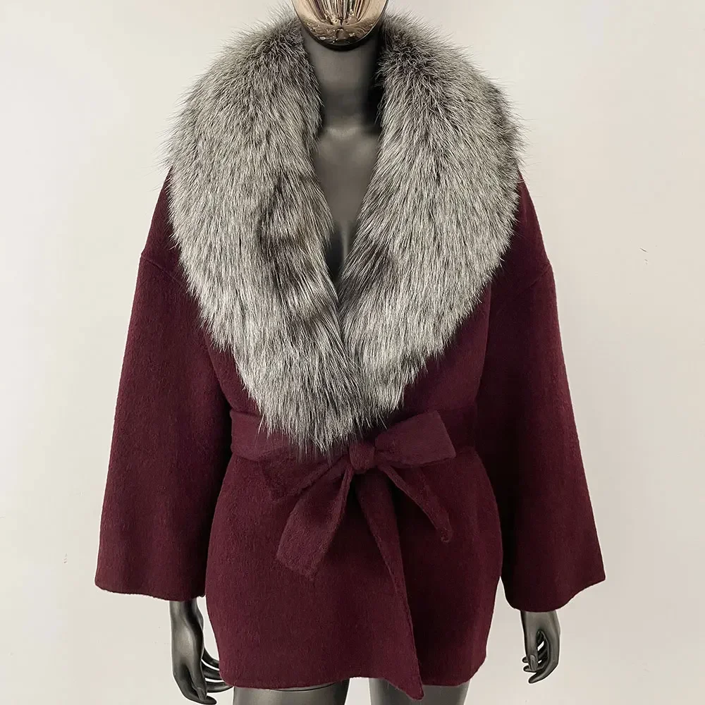 OFTBUY Real Raccoon Fox Fur Coat 2024 New Belt Pocket Winter Blends Wool Coat Women Loose Outerwear Fur Jacket Casual Streetwear
