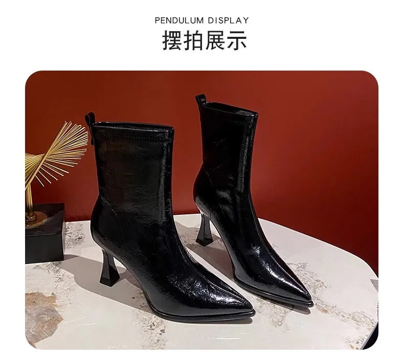 Pointed Toe High Heels Elegant Women Boots Chunky Leather Shoes 2025 Winter Fashion Pumps Chelsea Boots Dress Sexy Mujer Botas