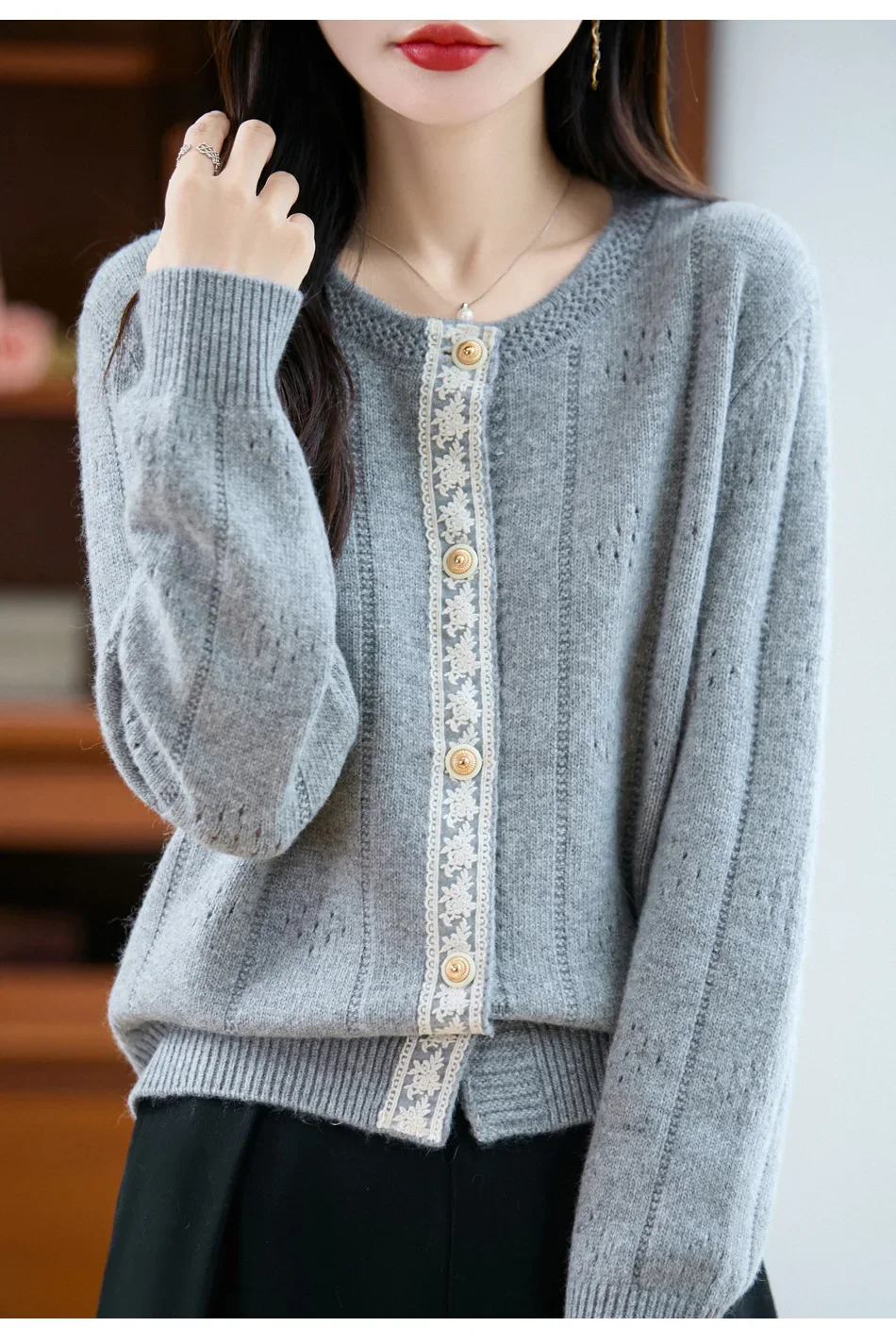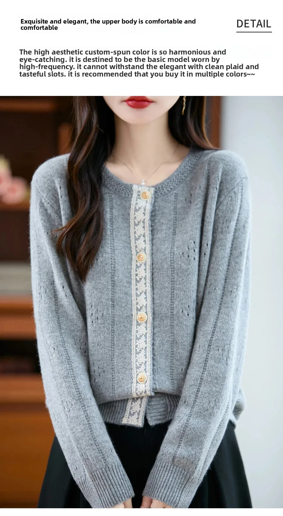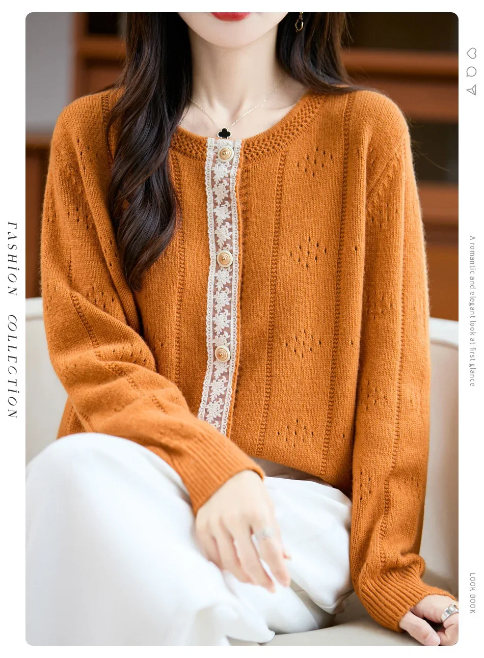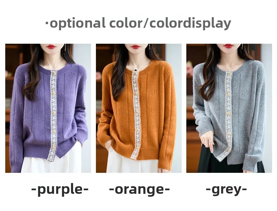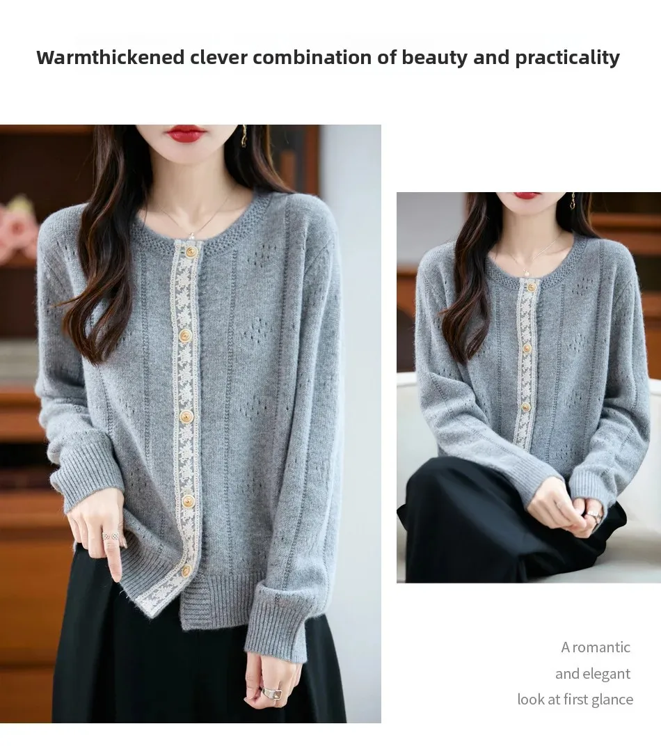 Slimming Soft Lace Splice Knitted Base Shirt French Design Sensation Knitted Open Cardigan Fashionable Anti-Aging Outerwear