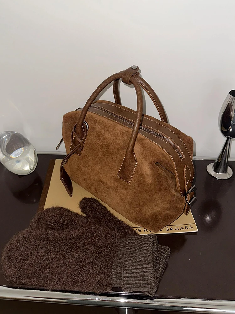 Suede Brown Single oulder Crossbody Bag Large Capaci Commuter Boston Bag Women's Faion Luxury Handbag Casual Briti Sle