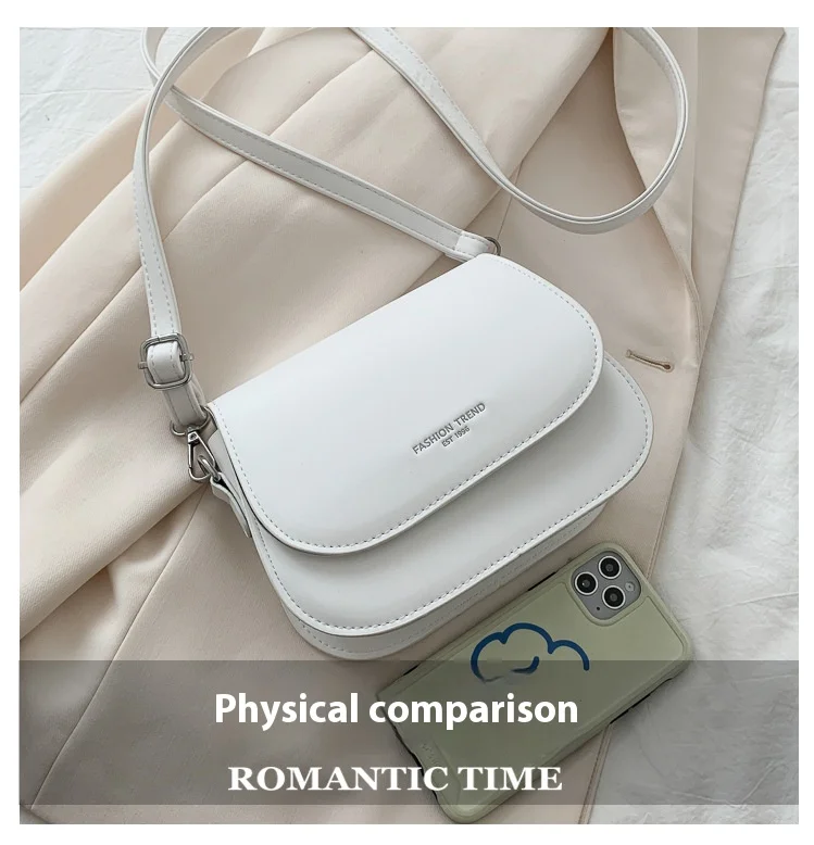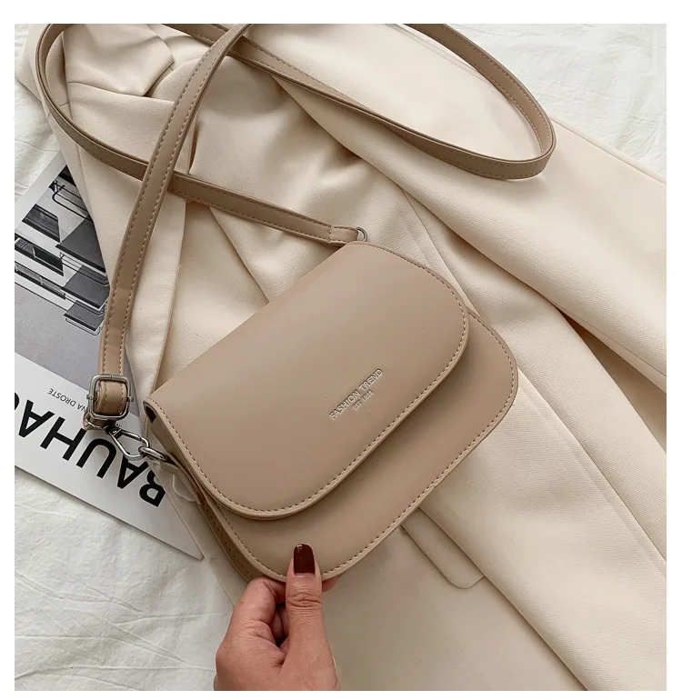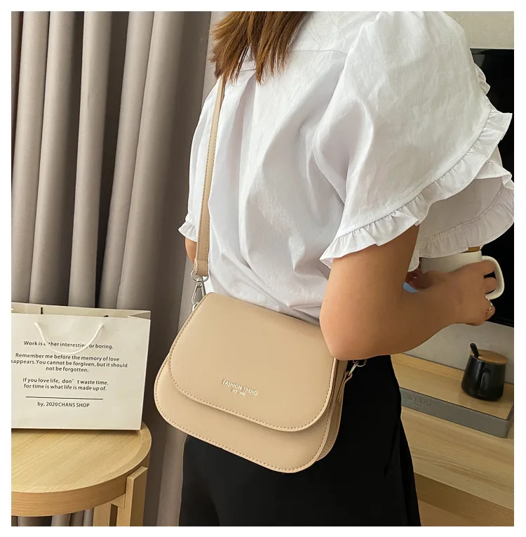 Trendy Saddle Shoulder Bag Women PU Leather Crossbody Bag Simple Solid Color Flap Messenger Bag Fashion Handbags Pouch